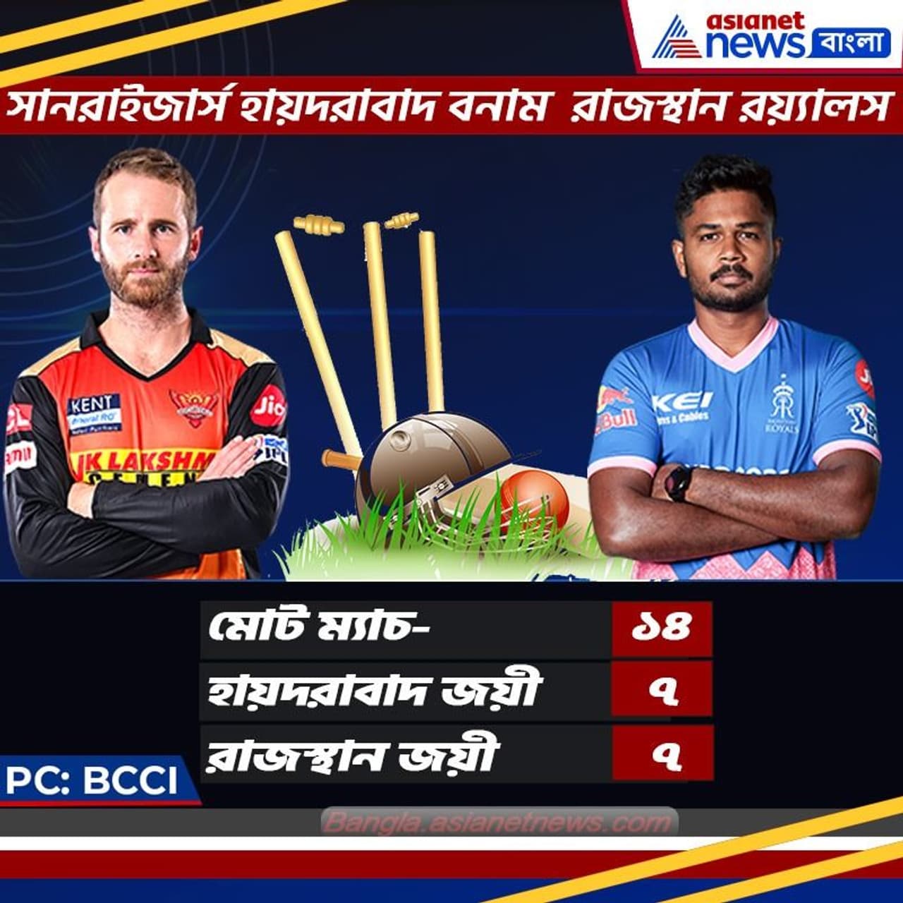 আইপিএলের ইতিহাসে এই দুই দল যখনই মুখোমুখি হয়েছে হাড্ডাহাড্ডি লড়াইয়ের সাক্ষী থেকেছে ক্রিকেট প্রেমিরা। এবারও আরও একটি হাড্ডাহাড্ডি ম্যাচ দেখার অপেক্ষায় সকলে। আইপিএল এখনও পর্যন্ত মোট ১৪ বার মুখোমুখি হয়েছে দুই দল। ৭টি ম্যাচ জিতেছে সানরাইজার্সের বর্তমান অদিনায়ক কেন উইলিয়ামসনের দল। অপরদিকে, সম সংখ্যক ম্যাচ জিতেছে রাজস্থান রয়্যালস। ফলে আজকের ম্য়াচে দুই দলের কাছেই সুযোগ রয়েছে পরিসংখ্যানের নিরিখে একে অপরকে ছাপিয়ে যাওয়ার।