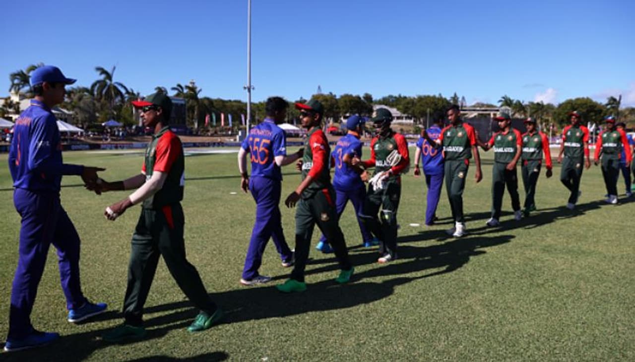 কোয়ার্টার ফাইনালের শুরু থেকেই ভাগ্য সাথ দেয় ভারতীয় দলের। টস জেতেন অধিনায়ক ইয়াশ ধুল। পিচে বোলারদের জন্য সুবিধা থাকায় বল করার সিদ্ধান্ত নেন ভারত অধিনায়ক। সেই সিদ্ধান্তকে সঠিক প্রমাণ করেন ভারতীয় বোলররা। প্রথম থেকেই নিয়মিত ব্যবধানে উইকেট হারাতে থাকে বামলাদেশ দল। কোন বড় পার্টনারশিপই গড়ে তুলতে পারেনি রাকিবুল হাসানের দল। বাংলাদেশ ব্যাটিং লাইনে এসএম মেহমুদের ৩০, আইচ মোল্লার ১৭ ও আশিকর জানমানের ১৬ রানের ইনিংস ছাড়া কোনও ব্যাটসম্যানই দুই অঙ্কের ঘরে রান করতে পারেননি। শেষে পর্যন্ত ১১১ রানে অল আউট হয়ে যায় বাংলাদেশ। ভারতের হয়ে রবি কুমার ৩টি উইকেট ছাড়াও ২টি উইকেট নেন ভিতি ওস্তাওয়াল, একটি করে উইকেট নেন রাজবর্ধন হাঙ্গেরগেকর, কৌশল তাম্বে ও অঙ্গক্রিশ রঘুবংশী।