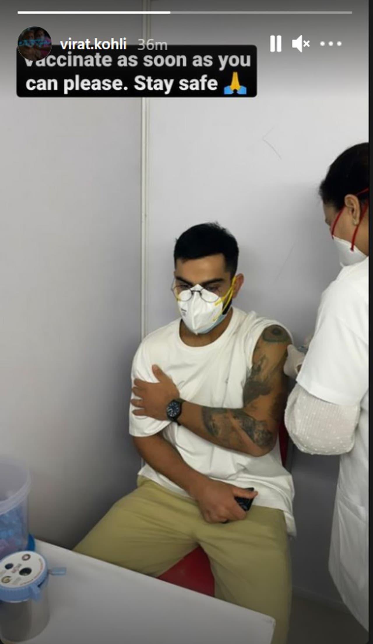 ইংল্যান্ডে বিশ্ব টেস্ট চ্যাম্পিয়নশিপের ফাইনাল ও ইংল্যান্ডের বিরুদ্ধে টেস্ট সিরিজ খেলতে যাওয়ার আগে ভারতীয় ক্রিকেটারদের টিকা নেওয়া বাধ্যতামূলক করা হয়েছে।ভারতীয় ক্রিকেটারদের টিকা দেওয়ার ব্যবস্থা করেছে বিসিসিআই। সোমবরা করোনা টিকা নিলেন খোদ ভারত অধিনায়ক। নিজের ইনস্টা স্টোরিতে টিকা নেওয়ার ছবিও আপলোড করেছেন বিরাট কোহলি। ছবি দেওয়ার পাশাপাশি সাধারণ মানুষের উদ্দেশ্যে আবেদন করে লিখেছেন,'যত দ্রুত সম্ভব সকলেই টিকা নিয়ে নিন। নিরাপদে থাকুন'।