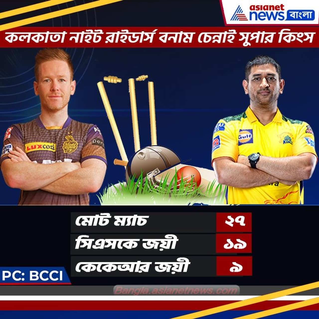 মেগা ফাইনালের আগে দুই দলের মুখোমুখি সাক্ষাতের পরিসংখ্য়ান কিন্তু অনেকটাই এগিয়ে রাখছে এমেস ধোনির দলকে। এখনও পর্যন্ত আইপিএলের ইতিহাসে মোট ২৭ বার মুখোমুখি হয়েছে কলকাতা নাইট রাইডার্স ও চেন্নাই সুপার কিংস। যার মধ্যে ৭০ শতাংশ ম্যাচ জিতেছে ইয়োলো আর্মি। অর্থাৎ ২৭টির মধ্যে ১৯টি ম্যাচেই জয়ের হাসি হেসেছে সিএসকে। অপরদিকে, মাত্র ৯টি ম্যাচে জয় পেয়েছে কেকেআর। তবে ফাইনালে দুই দলের মুখোমুখি সাক্ষাৎ হয়েছিল ২০১২ সালে। সেই ম্য়াচে এমএসধোনির দলকে হারিয়ে আইপিএলের প্রথমবার ট্রফি জয়ের স্বাদ পেয়েছিল কলকাতা নাইট রাইডার্স।