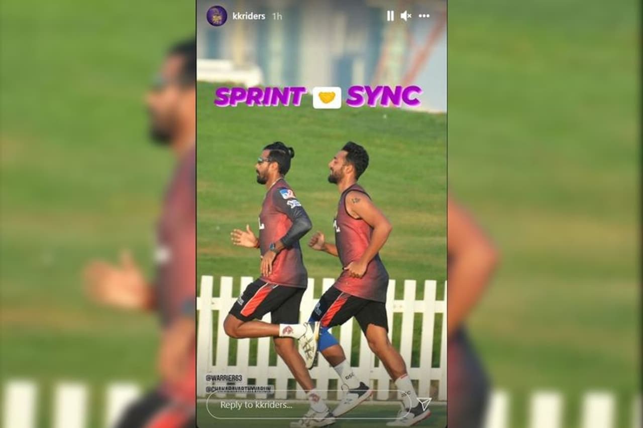 একসঙ্গে দৌড়তে দেখা গিয়েছে রহস্য স্পিনার বরুণ চক্রবর্তী এবং জোরে বোলার স্দীপ ওয়ারিয়রকে।