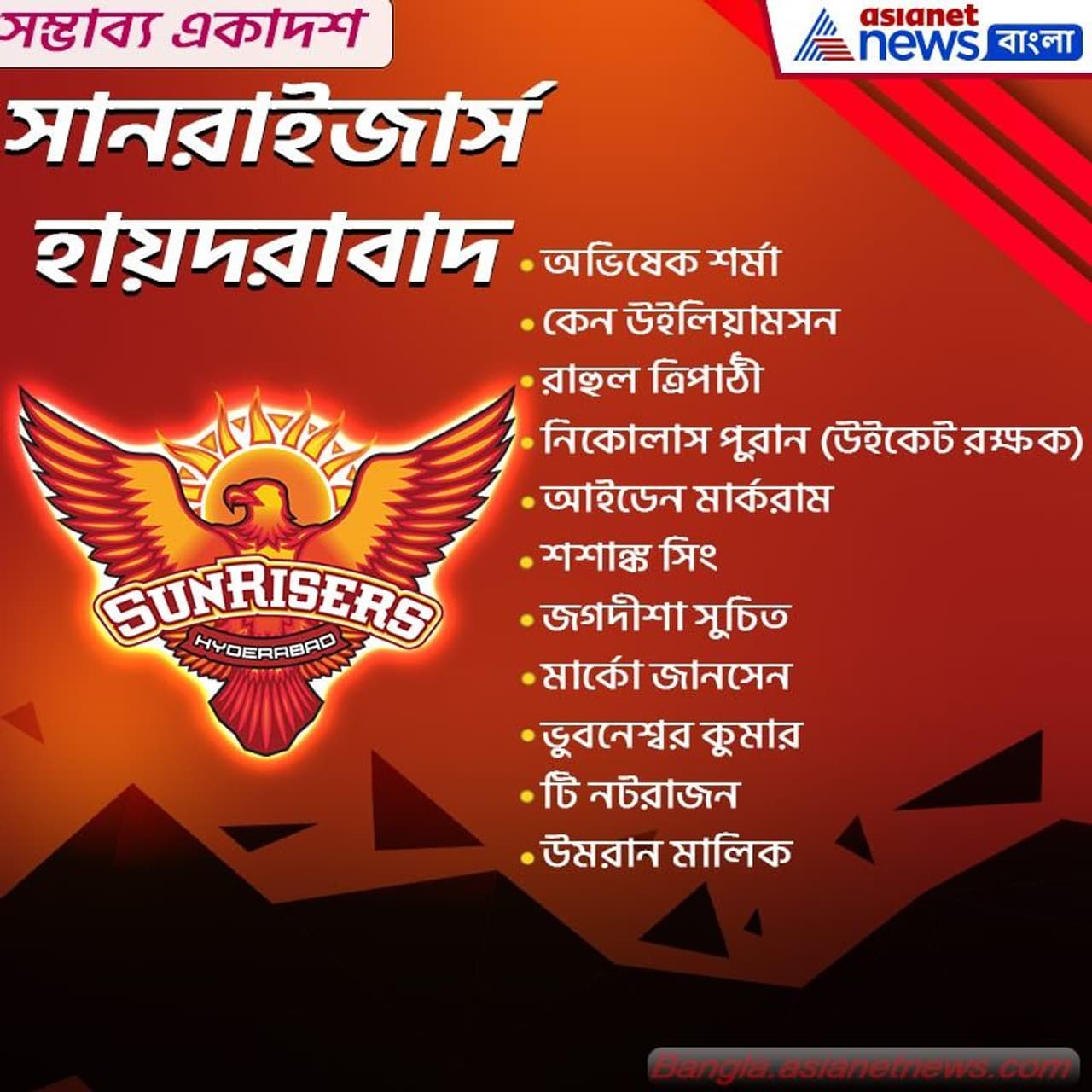 সানরাইজার্স হায়দরাবাদের সম্ভাব্য একাদশ-