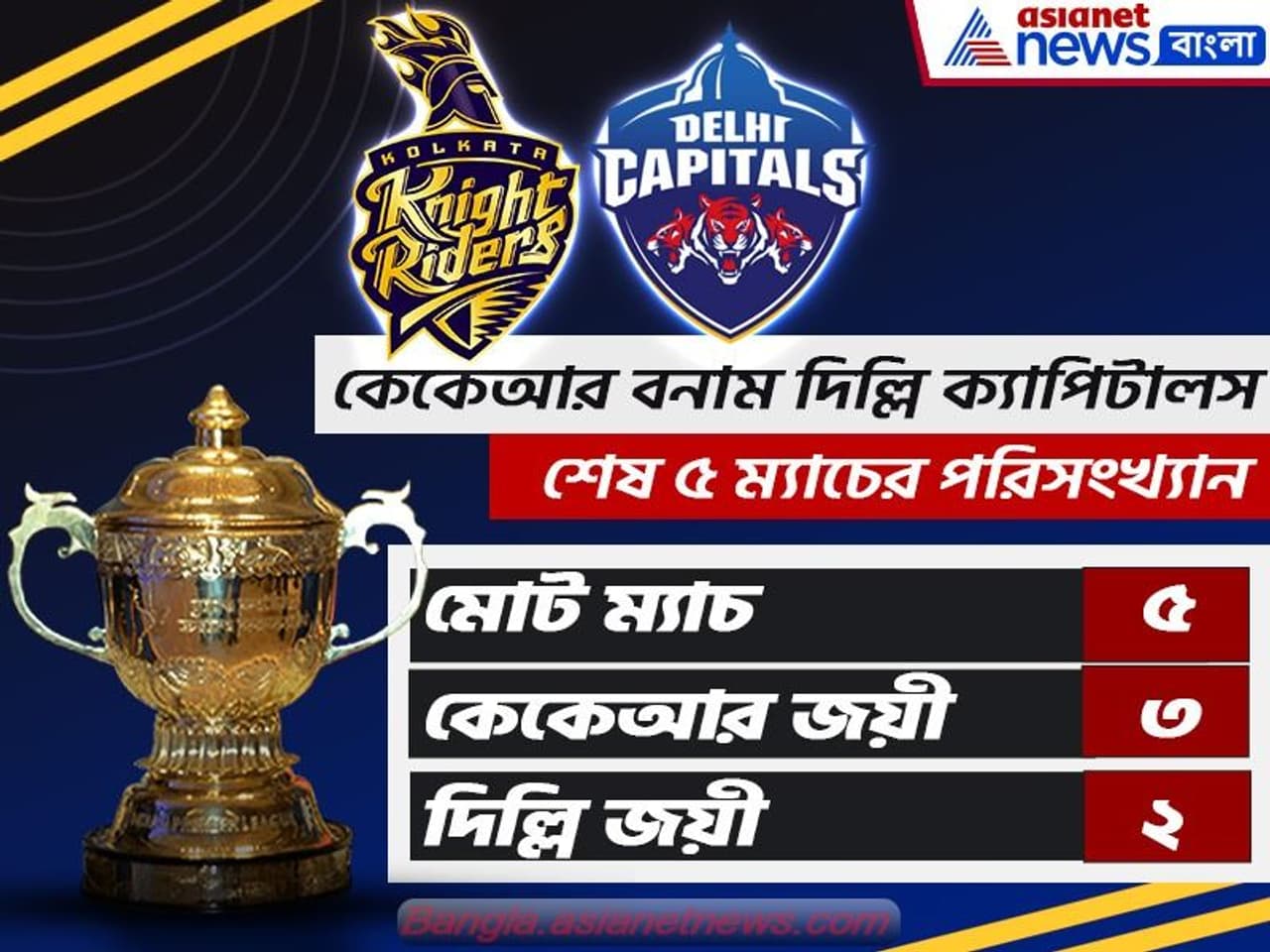 দু দলের শেষ ৫ ম্যাচের পরিসংখ্যানেও কিন্ত একটু এগিয়ে রয়েছে কলকাতা নাইট রাইডার্স। শেষ ৫ ম্য়াচের মধ্যে ৩টিতে জয় পেয়েছে দুবারের আইপিএল চ্যাম্পিয়ন কেকেআর ও ২টিতে জয় পেয়েছে এখনও আইপিএলের প্রথম ট্রফির খোঁজে থাকা দিল্লি ক্য়াপিটালস। আজকের ম্য়াচে একদিকে যেন জিতে প্রথম পর্বে হারের বদলা ও পরিসংখ্যান আরও কিছুটা ভালো করা, একইসঙ্গে শেষ চারে ওঠার রাস্তা মসৃণ করার সুযোগ রয়েছে নাইটদের সামনে। অপরদিকে পরিসংখ্যানে কেকেআরের আরও কাছে যাওয়া ও এবারের আইপিএল জয়ে ফিরতে মরিয়া দিল্লি।