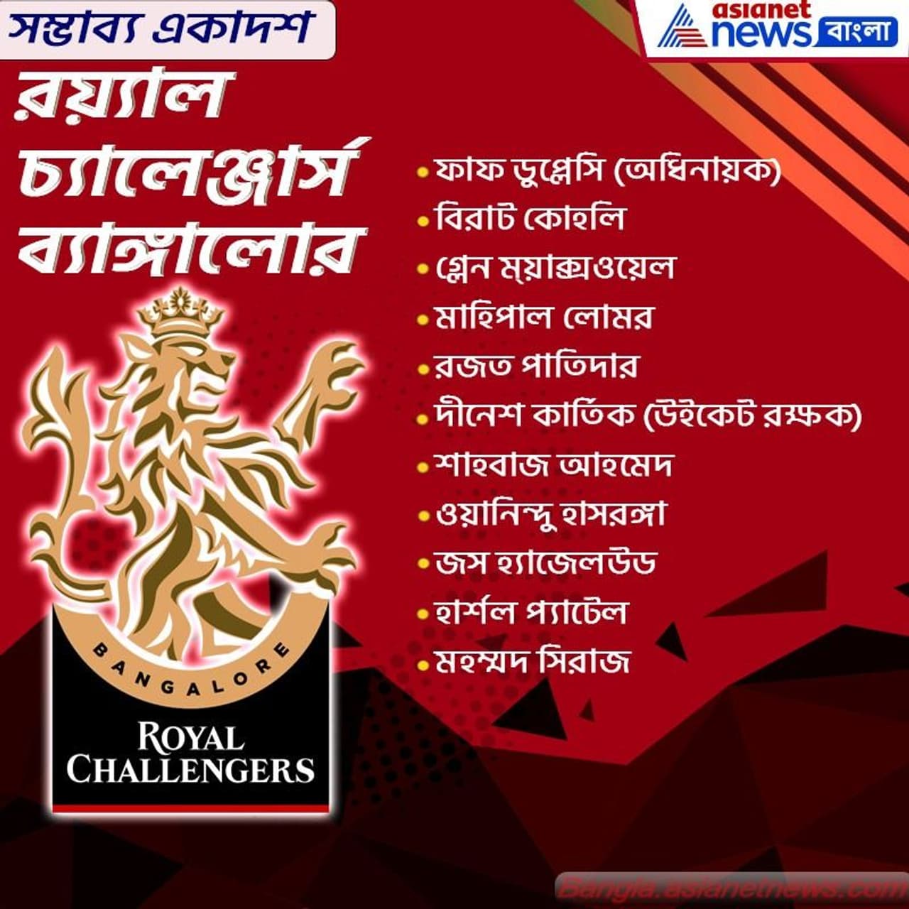 রয়্যাল চ্যালেঞ্জার্স ব্যাঙ্গালোরের সম্ভাব্য একাদশ-
