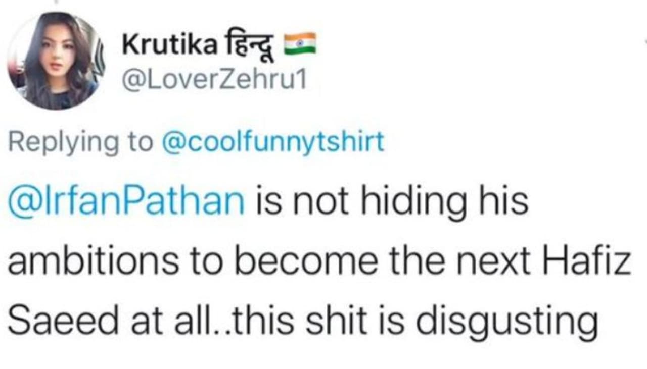 সোশ্যাল মিডিয়ায় এই খবর ছড়িয়ে পড়ার সঙ্গে সঙ্গেই ওই পোস্ট ভাইরাল হতে শুরু করে। বিষয়টি পাঠানের নজরে আসার পরই প্রচন্ড রেগে যান তিনি। জঙ্গি সংগঠনের নেতা হাফিজ সৈয়দের সঙ্গে তুলনা কিছুতেই মেনে নিতে পারেননি পাঠান। তিনি পাল্টা লেখেন, 'কিছু মানুষের মানসিকতা আসলে এতটাই খারাপ। দিন দিন আমরা যে কোথায় চলেছি! লজ্জা। হতাশা।' পোস্ট বিশাল পরিমানে ভাইরাল হওয়ায় কিছুটা হতাশও হয়ে পড়েন প্রাক্তন ক্রিকেটার। যদিও পড়ে জানা যায় যে অ্যাকাউন্ট থেকে এমন ঘটনা ঘটনো হয়েছে সেটি একটি ফেক অ্য়াকাউন্ট।