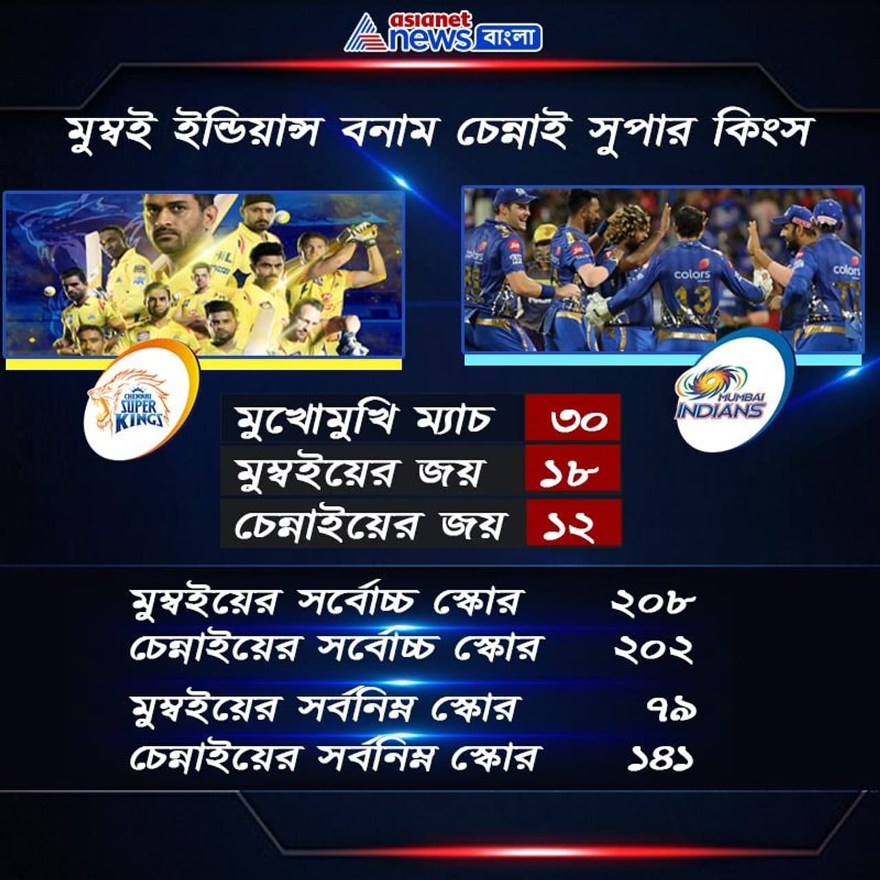 যদিও আইপিএলের পরিসংখ্যান কিন্তু কথা বলছে রোহিত শর্মার দলের হয়ে। এখনও অবধি মিলিয়ন ডলার লিগে ৩০ বার একে অপরের মুখোমুখি হয়েছে দুই প্রতিপক্ষ। তার মধ্যে ১৮ বারই বাজি মেরেছে মুকেশ আম্বানির দল। চেন্নাইয়ের জয় ১২ বার। সর্বোচ্চ স্কোরের দিক দিয়েও এগিয়ে মুম্বই। তাদের এই প্রতিযোগিতায় এক ইনিংসে সর্বোচ্চ স্কোর ২০৮, চেন্নাইয়ের সর্বোচ্চ স্কোর ২০২। তবে মুম্বই ইন্ডিয়ান্স একবার চেন্নাইয়ের বিরুদ্ধে মাত্র ৭৯ রানে অলআউট হয়ে গিয়েছিল। চেন্নাইকে কোনদিন এই লজ্জাজনক পরিস্থিতির মুখোমুখি হতে হয়নি। আজকে রাতে কি পরিসংখ্যান খানিকটা উন্নতি করতে পারবে ধোনির দল। জানতে অপেক্ষা আর কিছু ঘন্টার।