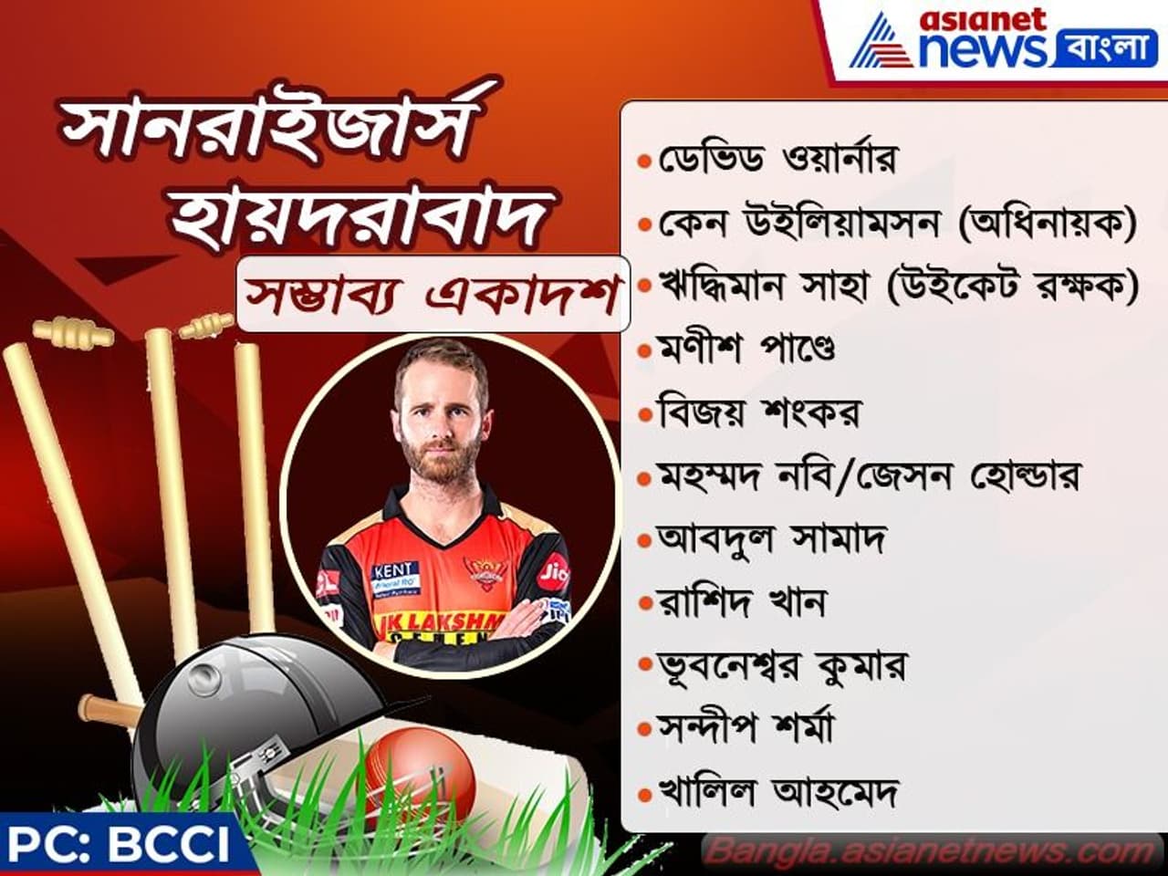 অপরদিকে, সানরাইজার্স হায়দরাবাদের ব্রিটিশ তারকা ব্যাটসম্যান জনি বেয়ারস্টো আইপিএল থেকে নাম প্রত্যাহার করে নিয়েছে। ফলে ব্যাটিং লাইনের শক্তি আরও কিছুটা কমেছে হায়দরাবাদের। সানরাইজার্সের প্রথম একাদশের ব্যাটিং লাইনে থাকতে পারেন ডেভিড ওয়ার্নার, কেন উইলিয়ামসন, ঋদ্ধিমান সাহা, মণীশ পাণ্ডে। অলাউন্ডারের ভূমিকায় থাকবেন বিজয় শংকর, মহম্মদ নবি অথবা জেসন হোল্ডার ও আবদুল সামাদ। বোলিং লাইনে থাকছেন রাশিদ খান, ভুবনেশ্বর কুমার, খালিল আহমেদ সন্দীপ শর্মারা।