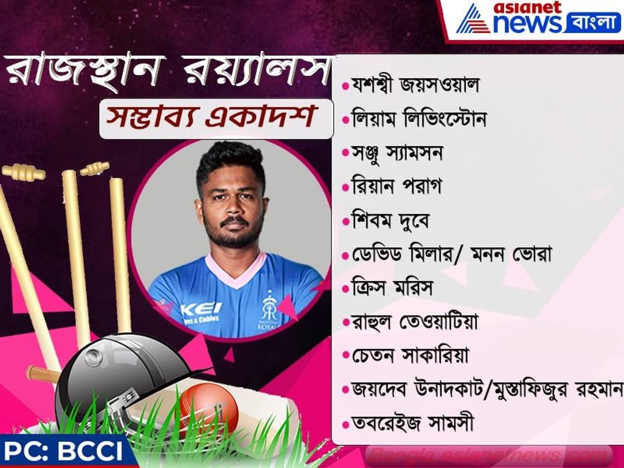 আজকের ম্যাচে দুই দলের একদশ কী হতে পারে তা নিয়ে কৌতুহল রয়েছে ক্রিকেট প্রেমিদের মধ্যে। বিশেষ করে রাজস্থান রয়্যালসের ক্ষেত্রে। কারণ একাধিক তারকা প্লেয়ারকে মরুদেশে পাচ্ছে না রয়্যালসরা। সেই তালিকায় বেন স্টোকস, জস বাটলার ও জোফ্রা আর্চারদের মতো তারকা। তাদের পরিবর্তে একাধিক প্লেয়ার দলে নিয়ে রাজস্থান রয়্যালস। আজকের ম্যাচে রাজস্থানের ব্যাটিং লাইনে থাকতে চলেছে, যশশ্বী জয়সওয়াল, লিয়াম লিভিংস্টোন, সঞ্জু স্যামসন, রিয়ান পরাগ, শিবম দুবে, ডেভিড মিলার/ মনন ভোরা। অলরাউন্ডারের ভূমিকায় থাকছেন ক্রিস মরিস ও রাহুল তেওয়াটিয়া। বোলিং লাইনে থাকছেন চেতন সাকারিয়া, জয়দেব উনাদকাট/মুস্তাফিজুর রহমান, তবরেইজ সামসী।