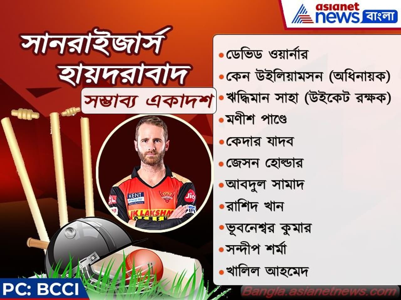 অপরদিকে, দিল্লির বিরুদ্ধে প্রথম ম্যাচ হারলেও পঞ্জাবের বিরুদ্ধে প্রথম একাদশেন সানরাইজার্স হায়দরাবাদের খুব একটা পরিবর্তনের সম্বাবনা নেই। দলেক ব্য়াটিং লাইনআপে থাকতে পারেন ডেভিড ওয়ার্নার, কেন উইলিয়ামসন (অধিনায়ক), ঋদ্ধিমান সাহা (উইকেট রক্ষক), মণীশ পাণ্ডে, কেদার যাদব। দলে অলরাউন্ডারের ভূমিকা পালন করবেন জেসন হোল্ডার ও আবদুল সামাদ। এছাড়া বোলিং লাইনআপে থাকছেন রাশিদ খান, ভূবনেশ্বর কুমার, সন্দীপ শর্মা, খালিল আহমেদ। বর্তমানে দলের হয়ে ব্য়াট হাতে ঝোড়ো ব্য়াটিং করছেন রাশিদ খান।