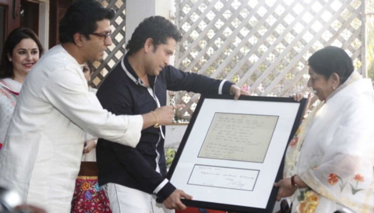 'ছেলের' আবদারও রেখেছিলেন লতা মঙ্গেশকর। নিজের বাড়ির মিউজিক রুমের জন্য লতা মঙ্গেশকরের ব্যবহার করা কোনও জিনিস চেয়েছিলেন সচিন তেন্ডুলকর। মাস্টার ব্লাস্টারের জন্মদিনে নিজের হাতে লেখা দুটি গান সচিনকে ফ্রেম করে উপহার দিয়েছিলেন লতা মঙ্গেশকর। এমন উপহার পেয়ে আপ্লুত ছিলেন সচিন। 'আই' (মা)-কে খালি হাতে ফেরাননি মাস্টার ব্লাস্টার। নিজের টেস্ট জার্সিতে আবেগ প্রবণ বার্তা লিখে উপহার লিখে তা লতা মঙ্গেশকরকে উপহার দিয়েছিলেন সচিন তেন্ডুলকর। এছাড়াও সচিনের জীবনে খারাপ ফর্মের সময়তেও পাশে দাঁড়িয়েছিলেন লতাজি। 'ছেলেকে' মনোবল জুগিয়েছিলেন 'মা'। লতা মঙ্গেশকর অসুস্থ থাকার সময় দ্রুত আরোগ্য কামনা করেছিলেন সচিনও। সুর সম্রাজ্ঞীর প্রয়াণে শোকস্তব্ধ সচিনও।