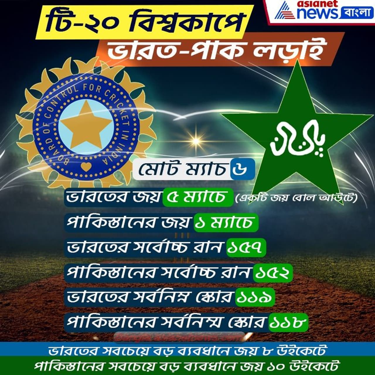 ২০২১ পর্যন্ত বিশ্বকাপে ভারতের বিরুদ্ধে একটি ম্যাচেও জয় পায়নি পাকিস্তান। গতবার টি-২০ বিশ্বকাপে প্রথমবার ভারতকে হারিয়ে দেন বাবর আজম-মহম্মদ রিজওয়ানরা। সেই ম্যাচে ১০ উইকেটে জয় পায় পাকিস্তান। ভারত প্রথমে ব্যাটিং করতে নেমে ৭ উইকেটে ১৫১ রান করে। তৎকালীন অধিনায়ক বিরাট কোহলি করেন ৫৭ রান। ঋষভ পন্থ করেন ৩৯ রান। পাকিস্তানের হয়ে ৩১ রান দিয়ে ৩ উইকেট নেন শাহিন আফ্রিদি। ৪৪ রান দিয়ে ২ উইকেট নেন হাসান আলি। একটি করে উইকেট নেন শাদাব খান ও হ্যারিস রউফ। রান তাড়া করতে নেমে ৭৯ রানে অপরাজিত থাকেন রিজওয়ান। ৬৮ রানে অপরাজিত থাকেন বাবর। এই ম্যাচটির আগে পর্যন্ত অবশ্য টি-২০ বিশ্বকাপে পাকিস্তানের বিরুদ্ধে সব ম্যাচেই জয় পেয়েছে ভারত। টি-২০ বিশ্বকাপে এখনও পর্যন্ত ভারত-পাকিস্তানের মোট ম্যাচ হয়েছে ৬। ভারতীয় দল জয় পেয়েছে ৫ ম্যাচে। তার মধ্যে ভারতের একটি জয় বোল আউটে। ২০০৭ সালের ১৪ সেপ্টেম্বরে দক্ষিণ আফ্রিকার ডারবানে প্রথম টি-২০ বিশ্বকাপের সেই ম্যাচ টাই হয়। এরপর বোল আউটে জয় পায় মহেন্দ্র সিং ধোনির দল। সেই বিশ্বকাপের ফাইনালে ফের ভারত-পাক লড়াই হয়। ৫ রানে জয় পায় ভারতীয় দল।