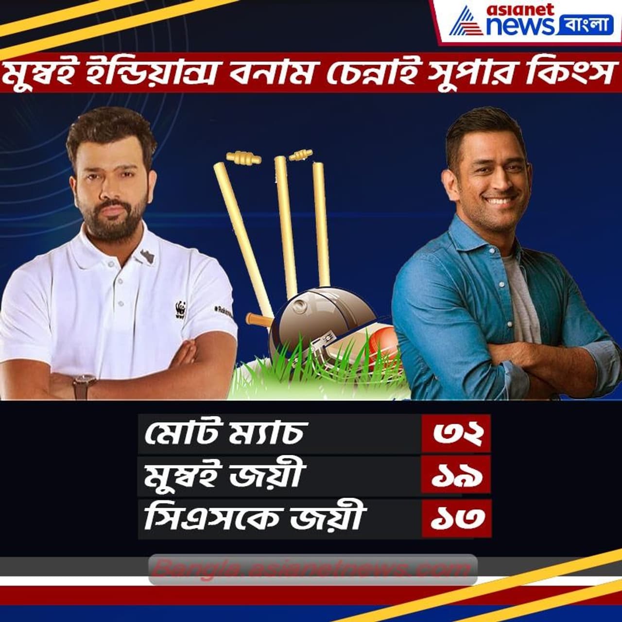 মুম্বই ইন্ডিয়ান্স বনাম চেন্নাই সুপার কিংস ম্যাচে হাড্ডাহাড্ডি লড়াই হলেও, পরিসংখ্যানের নিরিখে কিন্তু রোহিত শর্মার দল বেশ কিছুটা এগিয়ে রয়েছে। ফাইনালে সিএসকে বেশিবার মাত দেওয়ার পাশাপাশি মোট ম্যাচের পরিসংখ্যানেও এগিয়ে রয়েছে মুম্বই ইন্ডিয়ান্স। এখনও পর্যন্ত আইপিএলের ইতিহাসে মোট ৩২ বার মুখোমুখি হয়েছে চেন্নাই ও মুম্বই। যেই লড়াইয়ে মোট ১৯ বার জয় পেয়ছে ৫ বারের আইপিএল চ্যাম্পিয়নরা আর ১৩ বার জয় পেয়েছে ৩ বারের আইপিএল চ্যাম্পিয়নরা।
