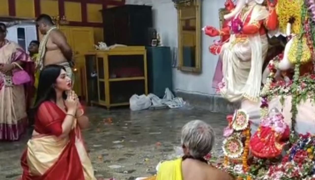 উত্তর কলকাতার শোভাবাজার রাজবাড়িতে অষ্টমীর সকালে দুর্গা পুজোর অঞ্জলি দিলেন বাংলাদেশের জনপ্রিয় অভিনেত্রী অপু বিশ্বাস। পুজো দেওয়ার পাশাপাশি তিনি রাজবাড়ির সদস্যদের সঙ্গে কথা বলেন। ঘুরে দেখেন রাজবাড়ি। অপু জানিয়েছেন, চলতি বছর শুধুমাত্র দুর্গা পুজোর উৎসব দেখার জন্যই তিনি বাংলাদেশ থেকে ভারতে এসেছেন।