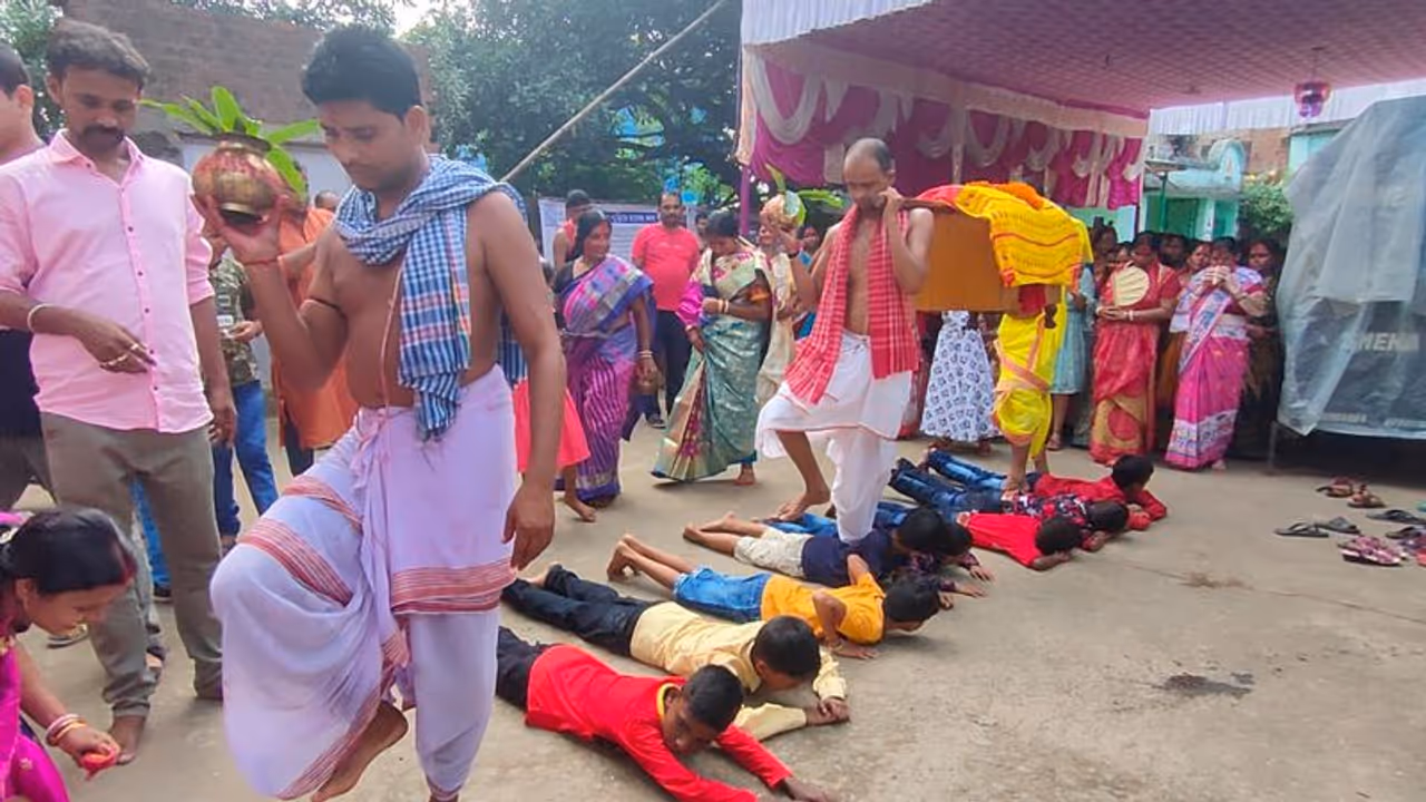 করোনার (Corona) জেরে প্রায় দু'বছর ধরে নাজেহাল দেশবাসী। সমস্যায় পড়েছেন বহু মানুষ। কাজ হারিয়েছেন অনেকেই। এমনকী, করোনা পরিস্থিতির (Corona Situation) মধ্যে দুর্গাপুজোতেও (Durga Puja) এই দু'বছর মন খুলে আনন্দ করতে পারেননি ছোট থেকে বড় বহু মানুষ। তাই মন খারাপ প্রায় সবারই। সেই দুঃখের সঙ্গে দশমীর (Vijaya Dashami) বিষণ্ণতার সুর মিলে মিশে একাকার হয়ে গিয়েছে। তবে আগামী বছর যাতে পরিস্থিতির উন্নতি হয়, পৃথিবী করোনা মুক্ত (Corona Free World) হয় সেই প্রার্থনায় মাটিতে সারি দিয়ে শুয়ে থাকল শিশুরা। আর তাদের উপর দিয়ে নিরঞ্জনের জন্য নিয়ে যাওয়া হল দশমীর নবপত্রিকা।