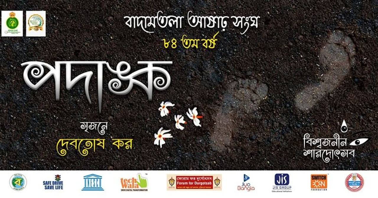 বাঙালির বারো মাসে তেরো পার্বনের মধ্যে শ্রেষ্ঠ উৎসব হল দুর্গাপুজো। পুজো নিয়ে বরাবরই বাঙালির একটা টানটান উত্তেজনা রয়েছে।হাতে আর মাত্র কয়েকদিন। সারা শহর আবার সেজে উঠবে আলোয়। এই বছর দুর্গাপুজো যেন বাঙালির কাছে একটু বেশি বাড়তি পাওনা। কারণ বাঙালির সবচেয়ে বড় উৎসব দুর্গাপুজো ইউনেস্কোর হেরিটেজ তকমা পেয়েছে। তা যেন বড় গর্বের ও আনন্দের বটে। করোনাকালে মহাসঙ্কট কাটিয়ে যেন ফের ছন্দে ফিরেছে আট থেকে অষ্টাদশী। পুজোর আনন্দে খুশির রেশ বাঙালির মনে। চলতি বছরে ৮৪ তম বর্ষে দারুণ চমক নিয়ে হাজির হয়েছে বাদামতলা আষাঢ় সংঘ। গত দুই বছরের তুলনায় এবছরের দুর্গোৎসবে অন্যরকমের চমক অপেক্ষা করছে দর্শনার্থীদের জন্য। প্রত্যেক বারের মতোই এবারেও নয়া ভাবনা উপস্থাপন করছে বাদামতলা আষাঢ় সংঘ । চলতি বছরে বাদামতলা আষাঢ় সংঘের থিম হলো- 'পদাঙ্ক'। সৃজন সজ্জায় রয়েছেন দেবতোষ কর। এই সুবিশাল ব্রহ্মান্ডে আত্মার সৃষ্টিকর্তা হলেন স্বয়ং ঈশ্বর। শৈশব থেকে কৈশোর, কৈশোর থেকে যৌবন, যৌবন থেকে বার্ধক্য। নিজের ক্রিয়াকৌশলের মাধ্যমে এই বিশ্বে বিভিন্নভাবে ছাপ ফেলতে থাকে ব্যক্তি। শেষকার্যে আগুনের তাপে ছাই ভস্মে পরিণত হয় মানবদেহ। যে দেহ বাঁচিয়ে রাখার জন্য এতকাল এত পরিশ্রম, তা নিশ্চিহ্ন হয়ে যায় কয়েক মুহূর্তে। তারপর একসময় পৃথিবীর বুকেই মিলিয়ে যায় দেহের শেষ 'পদাঙ্ক'ও। এই 'পদাঙ্ক'-এর মধ্য দিয়েই পুরো ভাবনাকে তুলে ধরছে বাদামতলা আষাঢ় সংঘ।