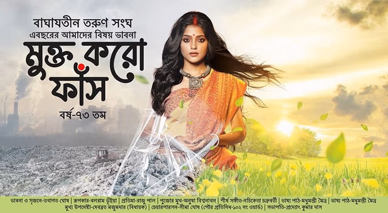 প্রত্যেক বারের মতোই এবারেও নয়া ভাবনা উপস্থাপন করছে বাঘাযতীন তরুণ সংঘ । চলতি বছরে বাঘাযতীন তরুণ সংঘের থিম হলো- 'মুক্ত করো ফাঁস'। এই ভাবনার মধ্য দিয়ে মায়ের কাছে আবেদন এবং সাধারণ মানুষের কাছে বিশেষ বার্তা পৌঁছে দিচ্ছে বাঘাযতীন তরুণ সংঘ। আমাদের মধ্যে সেই চেতনার উন্মেষ হোক যেখানে প্লাস্টিক অসুরের বিনাশ হবে এবং ধরিত্রী মাকে এই অসুরের হাত থেকে রক্ষা করাই হবে সকলের প্রধান দায়িত্ব। সকল মানুষের কাছে 'মুক্ত করো ফাঁস'-এর মাধ্যমে তারা এটাই আবেদনে জানাতে চান, প্লাস্টিক অসুর বধ করে ধরিত্রী মা-কে রক্ষা করুন। কারণ প্লাস্টিক বর্জন না করে পৃথিবী মা-কে রক্ষা করা সম্ভব হবে না। এই বার্তায় দিচ্ছে বাঘাযতীন তরুণ সংঘ ।