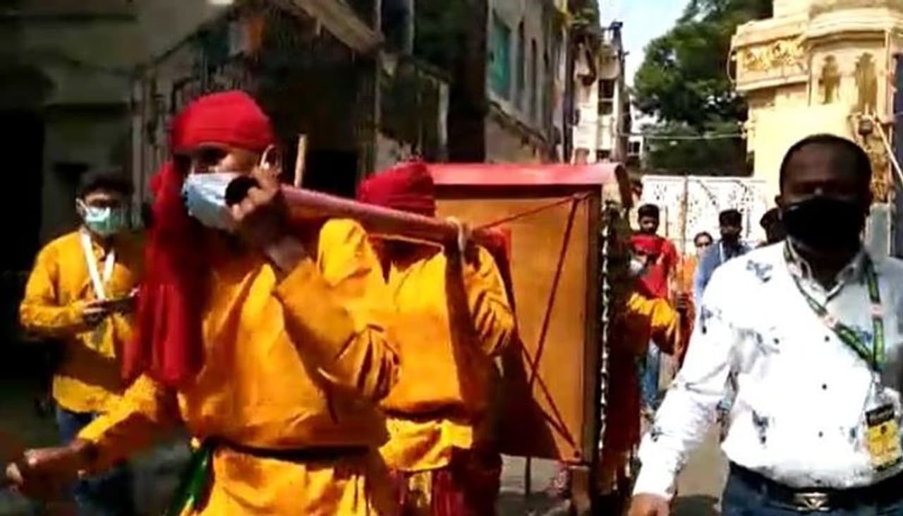 মুদিয়ালী ক্লাবে এবার অভিনব পালকি যাত্রা। আজ্ঞে হ্যাঁ প্রতি বছর ঐতিহ্য এবং রীতিকে বজায় রেখে মুদিয়ালি ক্লাবে কুমারী পূজো আয়োজন করা হয়। পুজো শেষে তাঁকে কোলে করে নিয়ে যাওয়া হয়। তবে এবার একেবারেই অন্য আঙ্গিকে নিয়ে যাওয়া হয়েছে। এবছর কোলে করে নয়, আস্ত পালকিতে করে কুমারীকে নিয়ে যাওয়া হয়েছে। রজনীগন্ধা ফুলে সাজানো হয়েছে এবং দুপাশে দুই পালকি চালক। যেনও পুরোনো কলকাতাকে ফিরিয়ে এনেছে মুদিয়ালী ক্লাব। প্রসঙ্গত, এবার ৮৭ বছরে পদাপর্ণ করল মুদিয়ালি ক্লাব। চলতি বছরে তাঁদের থিম হল পুজোর জন্য পুজো। মুদিয়ালির মন্ডপে দেখা যাচ্ছে রাজস্থানী শিল্পকলা।