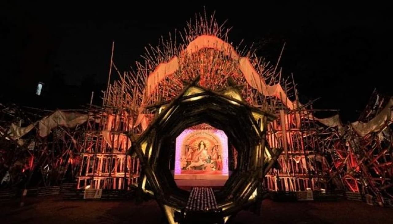বাতিল প্ল্যাস্টিকের বোতল আর রঙ- উত্তর কলকাতার এই পুজো মণ্ডপে যেন রামধনু ছটা