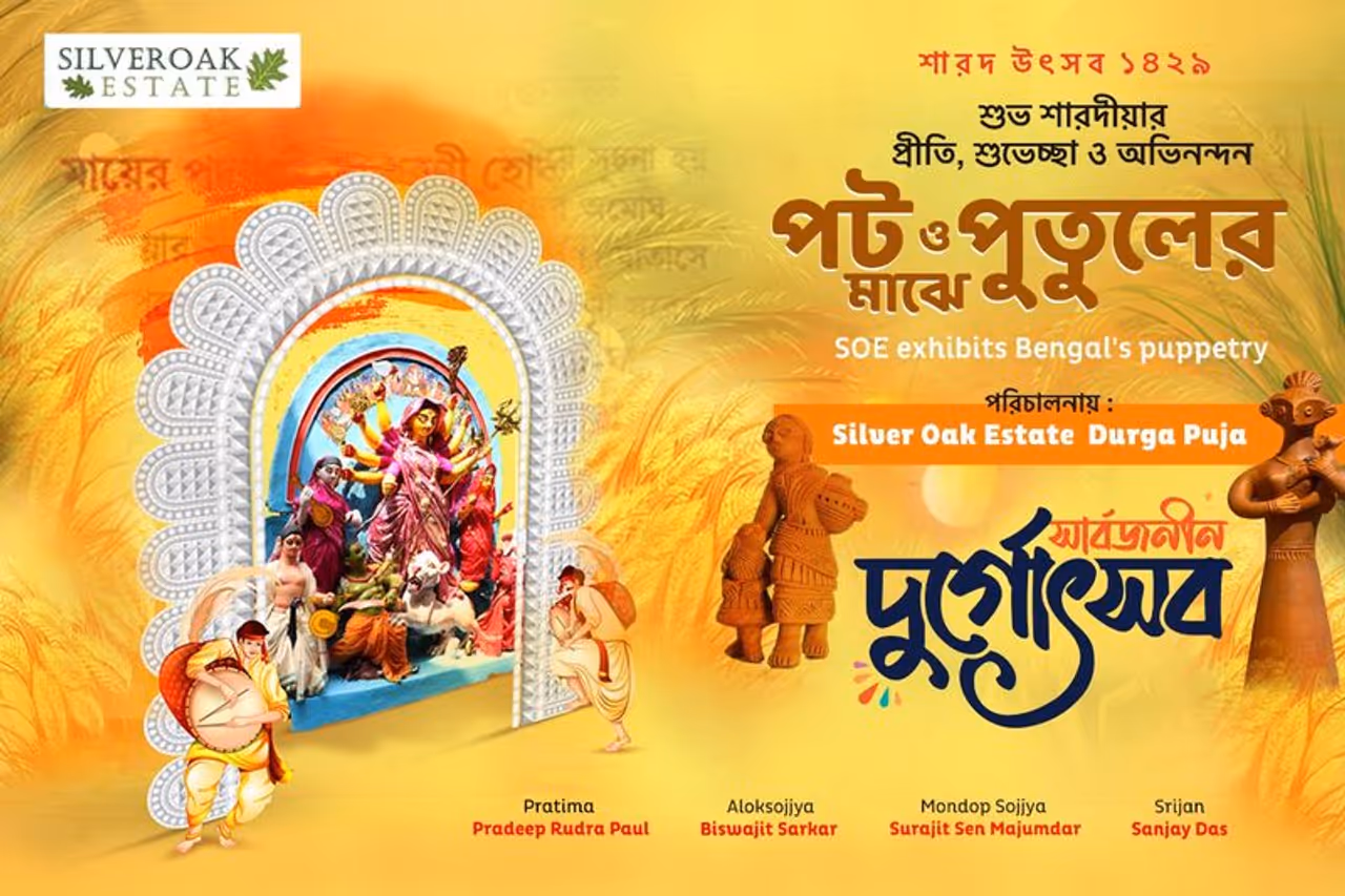 সিলভার ওক এস্টেট ,রাজারহাট এবারও নতুন চমক নিয়ে, ধুমধাম করে পালন করতে চলেছে দুর্গাপূজা। "পট ও পুতুল এর মাঝে এস ই ও " এই থিমের সাথেই তারা তাদের সপ্তমতম দুর্গাপূজা উদযাপন করবে।এবার পটপুতুলের মধ্য দিয়েই সিলভার ওক এস্টেট এর হাত ধরে মা আসছেন স্বর্গ থেকে মর্ত্যলোকে।