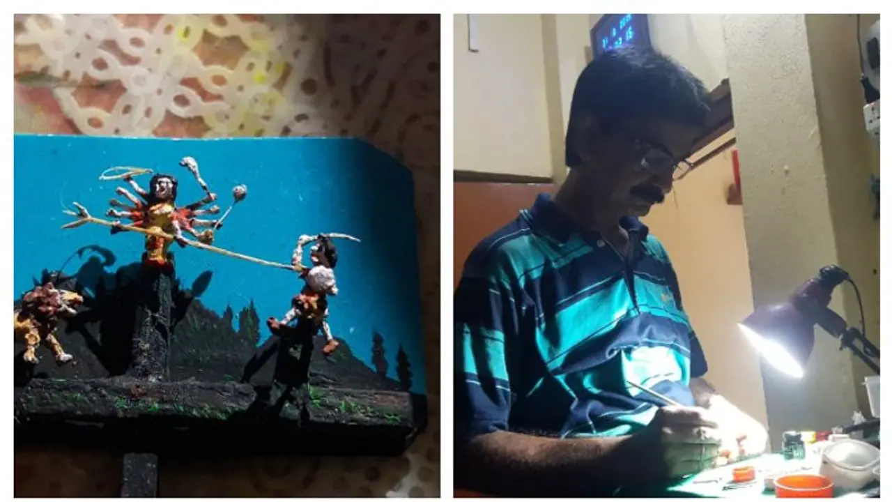 ক্ষুদ্র, অতিক্ষুদ্র মূর্তি তৈর করাই শখ রায়গঞ্জের বীরনগরের বাসিন্দা মানস রায়ের। চাল দিয়ে আগেই তৈরি করেছেন রবীন্দ্রনাথ, নজরুল, নেতাজি, গৌতম বুদ্ধ, অটল বিহাকী বাজপেয়ীর মতো ব্যক্তিত্বদের মুর্তি। এবার অতিক্ষুদ্র এক দুর্গা মূর্তি বানিয়ে তাক লাগিয়ে দিলেন এই শিল্পী।