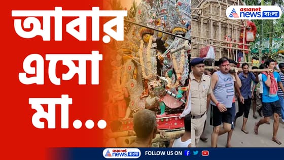 নিজের কাঁধে প্রতিমা তুলে ভাসানের জন্য নিয়ে যাচ্ছেন অভিনেতা বিশ্বনাথ বসু। মায়ের চলে যাওয়ায় মন খারাপ তাঁরও। আবার এসো মা... এই বলেই বিদায় দিলেন দেবী দুর্গাকে।