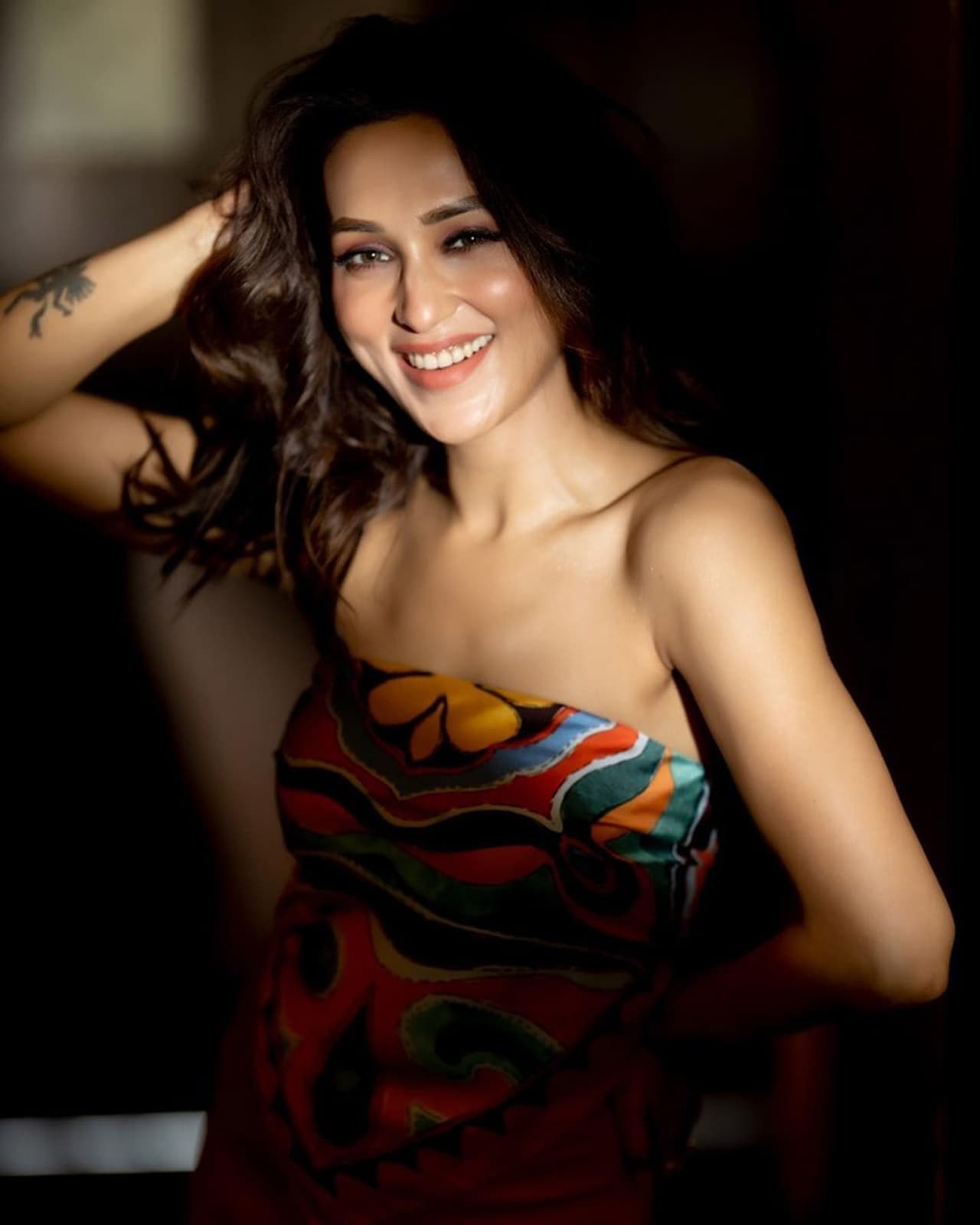 যেখানে অফ শোল্ডার টপে দেখা যাচ্ছে মিমিকে। একটি প্রিন্টেড টপ পরেছেন নায়িকা। হলুদ, লাল, নীল রঙের প্রিন্টেড টপ। টপটি অফ শোল্ডার স্টাইল। যাতে বেশ আকর্ষণীয় দেখাচ্ছে নায়িকাকে।