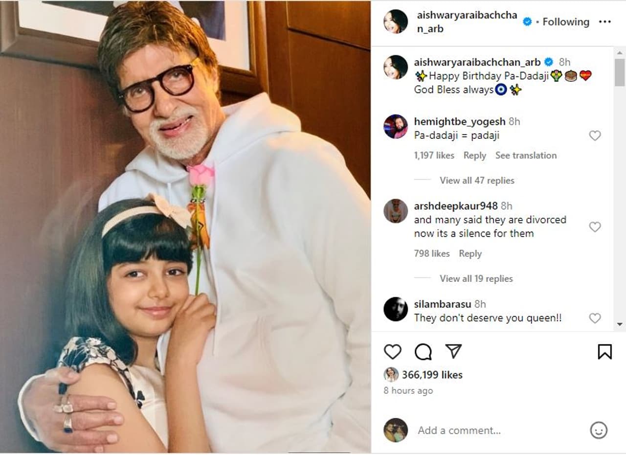 আরাধ্যার সঙ্গে ছবি শেয়ার করে অমিতাভকে জন্মদিনের শুভেচ্ছা জানালেন ঐশ্বর্য, ভাইরাল হল পোস্ট