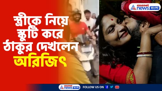 Arijit Singh: স্কুটি করে ঠাকুর দেখলেন অরিজিৎ, সঙ্গী স্ত্রী কোয়েল, দেখুন ভিডিও