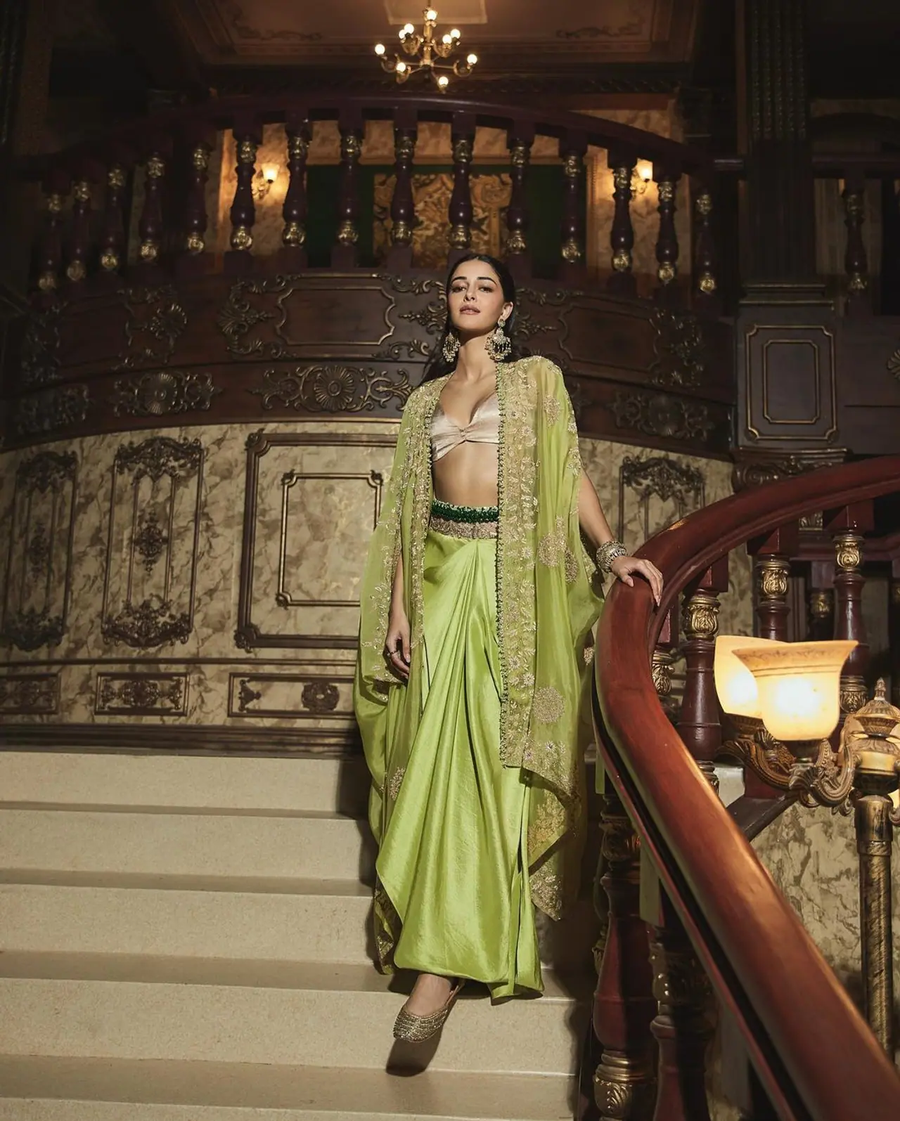 ডিপ নেক ব্লাউজের সাথে কুঁচি দেওয়া ধুতি স্টাইলের ঘাগড়া, একেবারে অন্যরকম সাজে সেজেছেন অনন্যা পাণ্ডে।