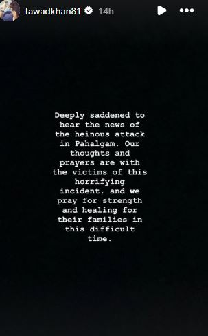 ফাওয়াদ তার ইনস্টাগ্রাম প্ল্যাটফর্মে সন্ত্রাসবাসী হামলায় নিহতদের পরিবারের প্রতি গভীর সমবেদনা জানিয়েছেন এবং তাদের ক্ষতির জন্য শোক প্রকাশ করেছেন। ফাওয়াদ সোশ্যাল মিডিয়া পোস্টে বলেছেন,