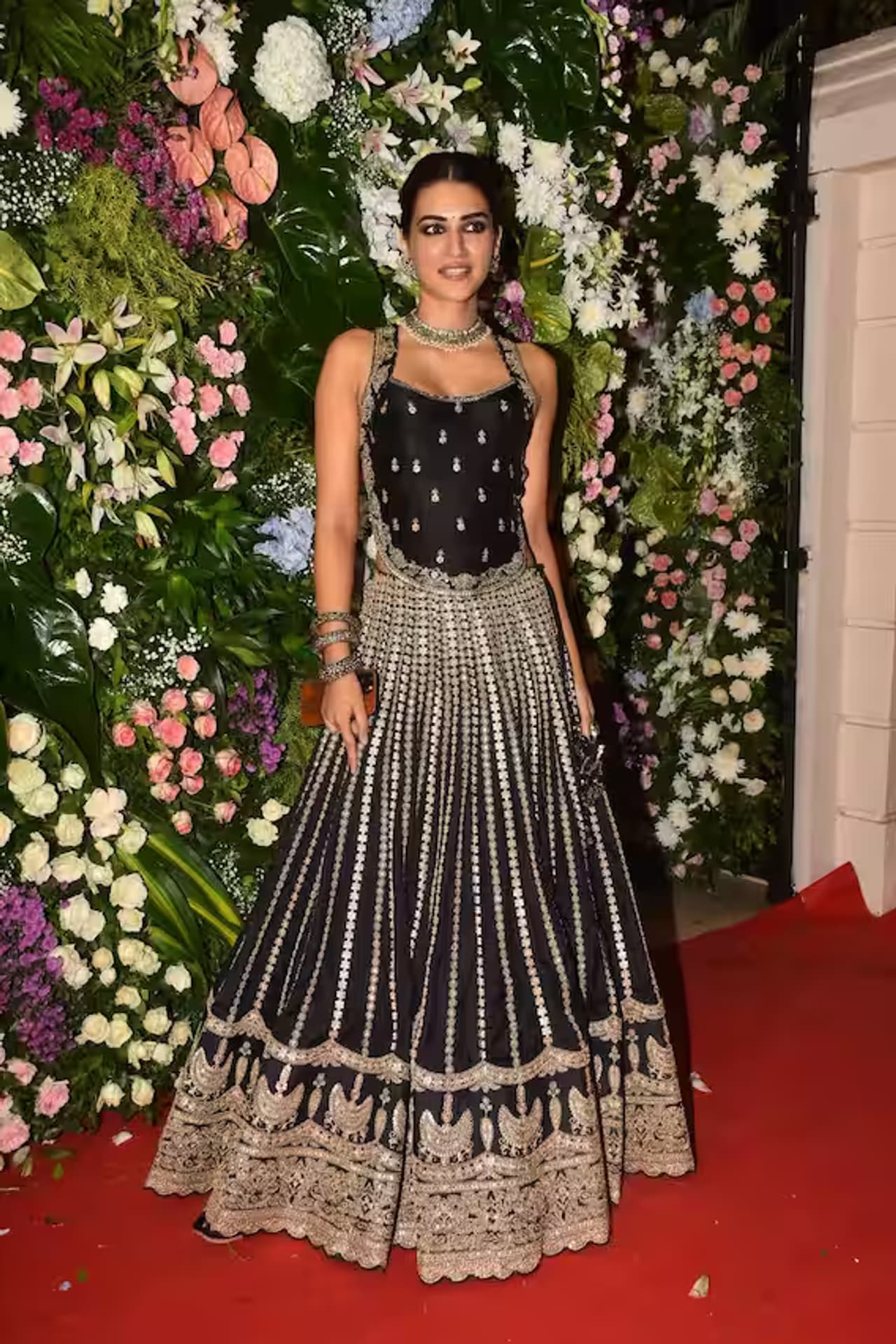 কালো ও সিলভার কাজ করা লং গাউনে হাজির হল কৃতি শ্যান। এর সঙ্গে হাতে ও গলায় পরেছিলেন অক্সিডাইসের জুয়েলারি। একেবারে অন্যরকম সাজে দেখা দেন কৃতি। পার্টিতে বেশ আকর্ষণীয় দেখাচ্ছিল তাঁকে।