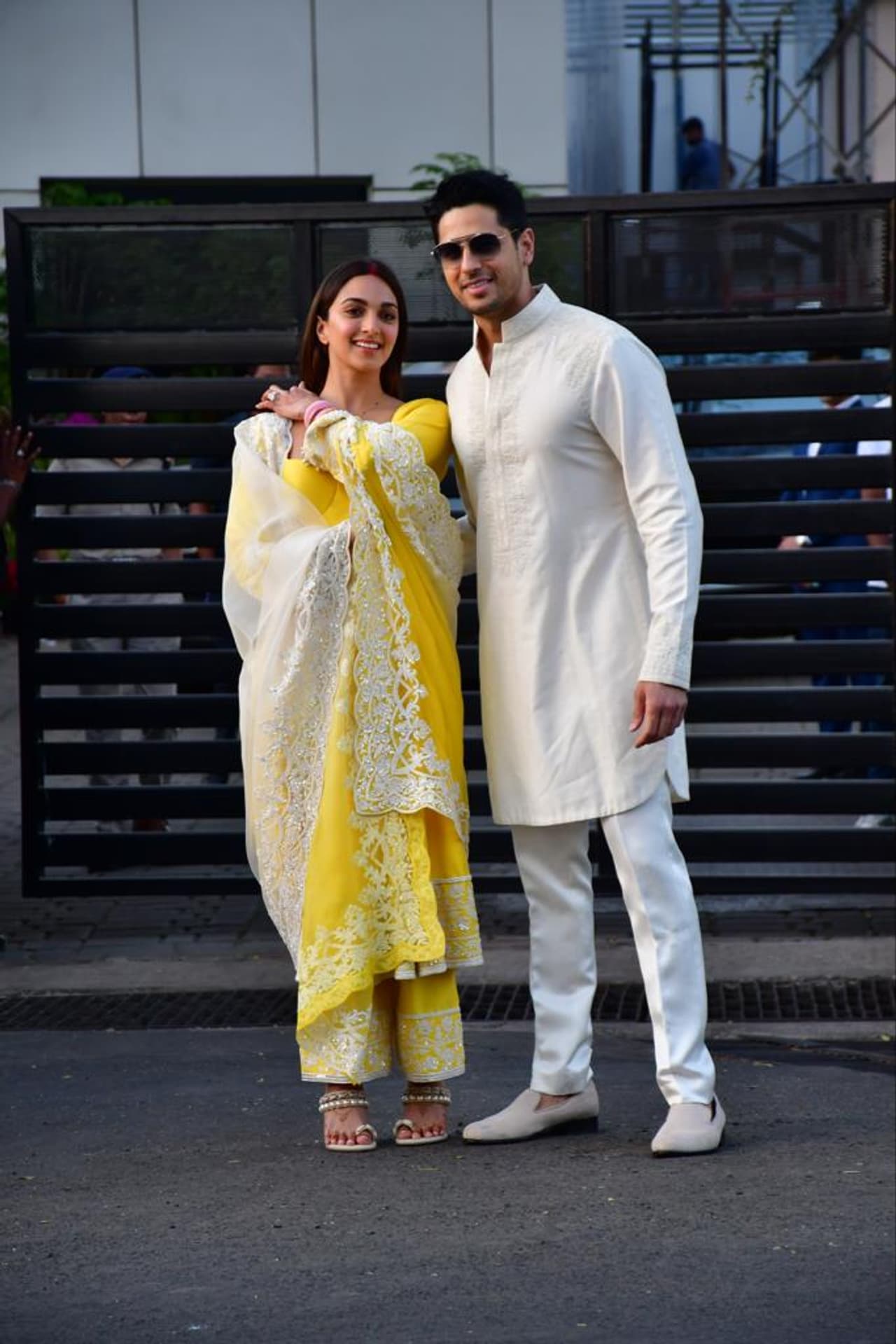 নো-মেক লুক, হলুদ রঙের সালোয়ার কামিজ, মাথা ভর্তি সিঁদুর পরে সিদ্ধার্থর সঙ্গে পোজ দেন কিয়ারা। অন্য অফ হোয়াইট রঙের কুর্তা সেট পরেছিলেন সিদ্ধার্থ । এদিন পাপারাৎজিজের মিষ্টি উপহার দেন তারকা দম্পতি।