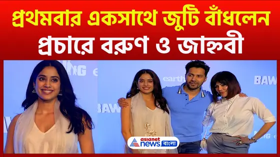 প্রথমবার একসাথে জুটি বাঁধলেন বরুণ ও জাহ্নবী। বাওয়াল ছবির প্রচারে বরুণ ও জাহ্নবী। ছবির প্রচারে হাজির ওয়ারদা নাদিয়াদওয়ালা।