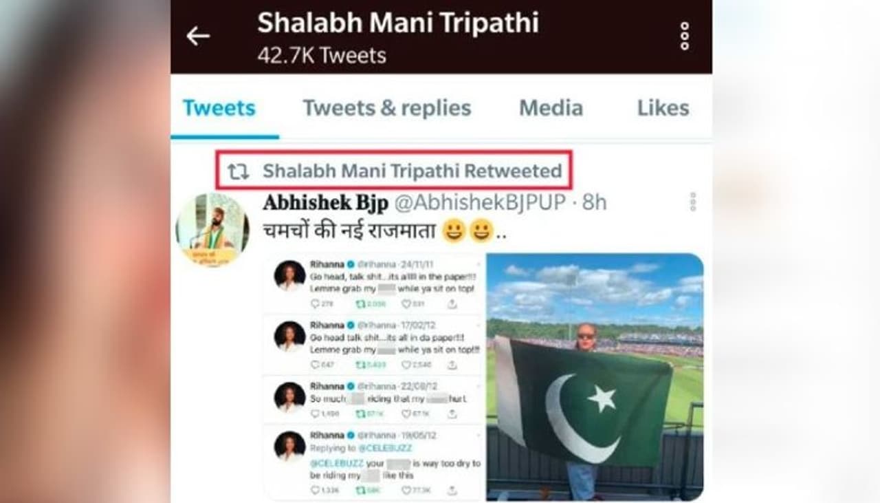 পাকিস্তানের পতাকা হাতে নিয়ে দাঁড়িয়ে রয়েছেন রিহানা। স্টেডিয়ামের মাঝে দাঁড়িয়ে রিহানা। চোখে রোদচশমা পরণে জিনস, টিশার্ট। উত্তরপ্রদেশের বিজেপি মুখপাত্র শলভ মানি ত্রিপাঠি একটি টুইট রিটুইট করেছেন যেখানে রিহানার ছবিটি ভাইরাল হয়েছে। রিহানাকে পাকিস্তানি বলে দাবি করে বসেছে একাধিক নেটিজেনরা। উত্তরপ্রদেশের বিজেপির যুবা মোর্চা কর্মী অভিষেক ছবিটি শেয়ার করেন।