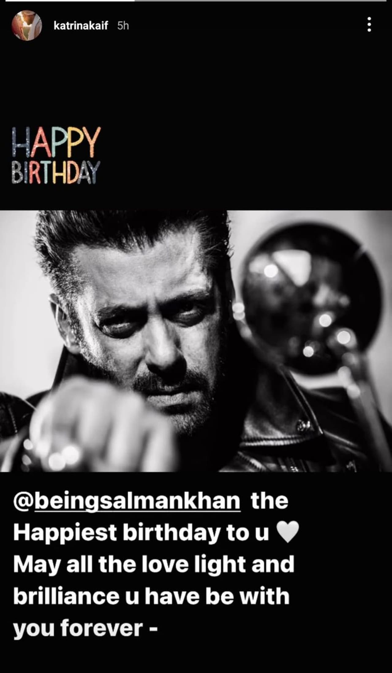২৭ শে ডিসেম্বর ভাইজানের অনুরাগীদের কাছে বড়দিন নিউ ইয়ারের (Happy New Year) মতোই এটি একটি বিশেষ দিন। কারণ এদিন সলমন খানের জন্মদিন (Salman Khan Birthday)। সকাল থেকেই জন্মদিনের শুভেচ্ছা বার্তায় ভাসছে সোশ্যাল মিডিয়া (Wishes on Social Media)। সলমন খানের অনুরাগীরা তো বটেই সেইসঙ্গে ভাইজানকে শুভেচ্ছা জানিয়েছেন বলিউডের একাধিক তারকা। এমন কি সেই তালিকা থেকে বাদ পড়লেন না সলমন খানের প্রাক্তন প্রেমিকা তথা সদ্য ভিকি কৌশলের সঙ্গে বিবাহিত অভিনেত্রী ক্যাটরিনা কাইফ (Bollywood Actress Katrina Kaif)। এক সময়ের প্রাক্তন এবং ইন্ডাস্ট্রির সহকর্মী ও বন্ধু সলমন খানের জন্মদিনে ইনস্টাগ্রামে একটি বিশেষ স্ট্রোরি শেয়ার করেছেন ক্যাটরিনা।