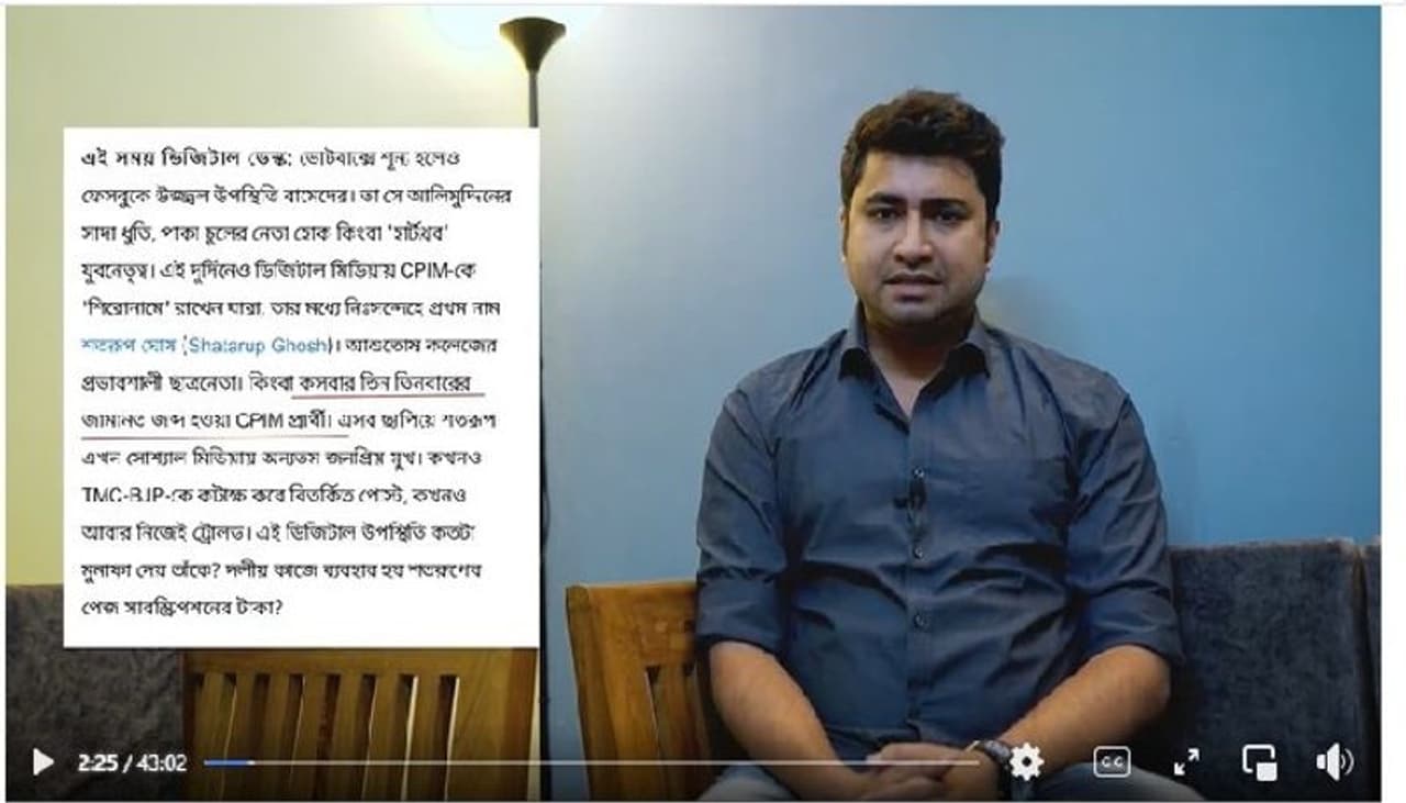 খবরের মিথ্যাচারের বিরুদ্ধে গর্জে উঠলেন সিপিএম-এর তরুণ তুর্কী শতরূপ ঘোষ (CPIM Leader Shatarup Ghosh)। সরাসরি তিনি ফেসবুক লাইভ (Facebook Live) করে তাঁকে নিয়ে প্রকাশিত একটি খবরকে পরিস্কার ভাষায় ফেক বলে প্রতিপন্ন করেছেন। এই ফেক নিউজ (Fake News) তাঁকে কতটা প্রভাবিত করেছে তা ফেসবুক লাইভেও তুলে ধরেছেন তিনি। একটি সংবাদমাধ্যমের প্রকাশ করা একটি প্রতিবেদনকে সরাসরি কাটাছেঁড়া করেছেন শতরূপ। তথ্য তুলে তুলে প্রায় ৪৩ মিনিট ধরে চলা এই ফেসবুক লাইভে তিনি দাবি করেছেন যে এই খবরে প্রকাশিত তথ্যগুলো ভুল এবং এই খবর প্রকাশ করার আগে তাঁর কাছ থেকে তথ্যগুলোকে যাচাই করা হয়নি। প্রয়োজনে আইনি পথে যাওয়ারও হুঁশিয়ারি দিয়েছেন ক্ষিপ্ত শতরূপ।