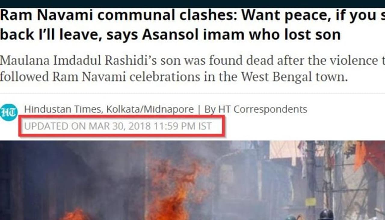 রাম নবমীর সেই ঘটনা এখনও বঙ্গবাসী ভোলেনি। কারণ সেই সময় স্থানীয় ইমাম তাঁর মাত্র ১৬ বছরের সন্তানকে হারিয়েছিলেন সংন্ত্রাসের কারণে। কিন্তু তারপরেও সেই ইমাম শান্তি বজায় রাখার আর্জি জানিয়েছিলেন। একই সংবাদ প্রকাশিত হয়েছিল ইন্ডিয়া টুডে- প্রত্রিকায়।