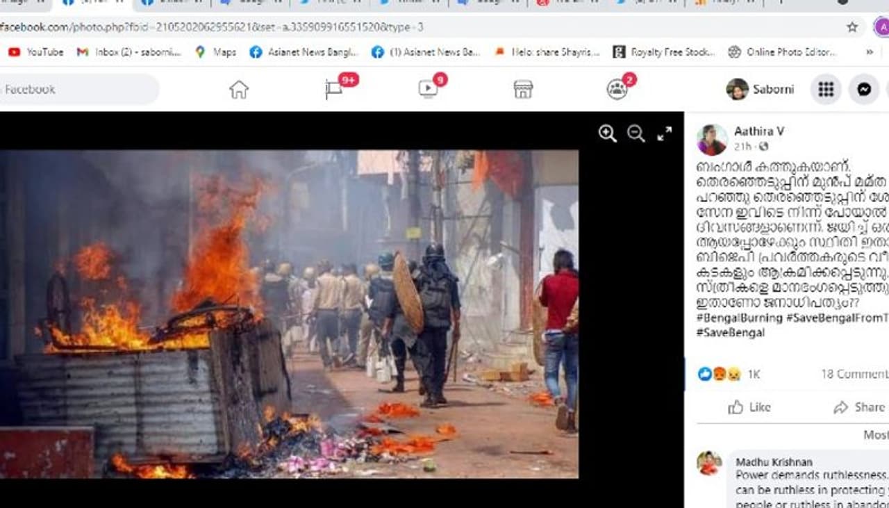 এশিয়ানেট নিউট বাংলার ফ্যাক্ট চেক টিম ছবিটি খতিয়ে দেখেছে। তাতে দেখা গেছে এই ছবিটি এই রাজ্যের। কিন্তু এই ছবিটি চলতি বছর ভোট সন্ত্রাসের। ছবিটি ২০১৮ সালের, ৩০এ এপ্রিলের তোলা হয়েছিল। ছবিটি ছিল বর্ধমানের রানিগঞ্জের। সেই বছর রাম নবমীর শোভাযাত্রাকে কেন্দ্র করে উত্তাল হয়ে উঠেছিল গোটা এলাকা। সংঘর্ষ প্রায় অগ্নিগর্ভ পরিস্থিতি নিয়ে ছিল। ছবিটি তুলেছিল সংবাদ সংস্থা পিটিআই। আর ছবিটি ছাপা হয়েছিল হিন্দুস্থান টাইমসে।