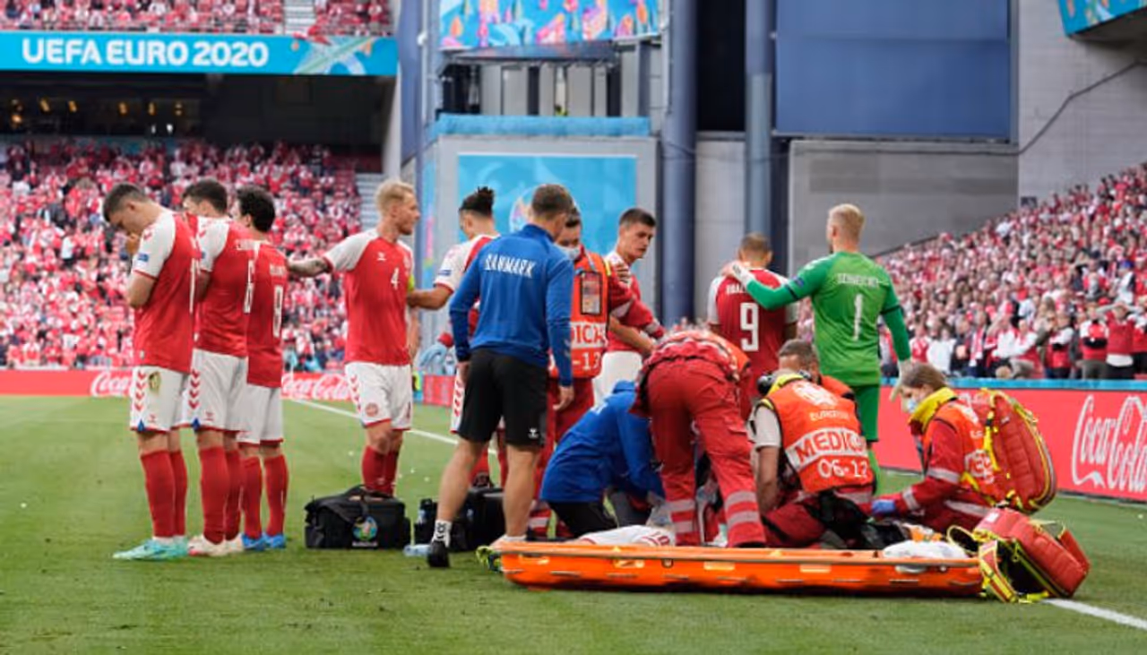ইউরো শুরুর দ্বিতীয় দিনেই অঘটন। শনিবার ডেনমার্ক বনাম ফিনল্যান্ড ম্যাচ চলাকালীন গুরুতর চোট পান ডেনমার্কের তারকা ফুটবলার ক্রিস্টিয়ান এরিকসন। যার ফলে মাঝপথেই বন্ধ করে দিতে হয় খেলা। ডেনমার্ক বনাম ফিনল্যান্ডের প্রথমার্ধের খেল চলছিল। সেই সময় হঠাৎই মঠে পড়ে গিয়ে চোট পান ক্রিস্টিয়ান এরিকসন। পড়ে যাওয়ার পর আর হুঁশ ফেরেনি তার। সতীর্থরা তাকে কাছ থেকে দেখেই মেডিক্যাল টিমকে তড়িঘড়ি মাঠে আসতে বলে।