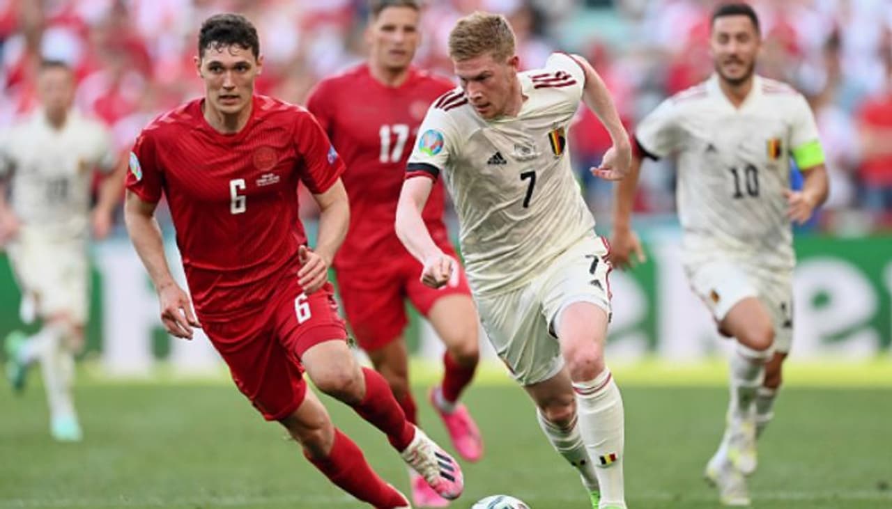 এদিন ডেনমার্ক ও বেলজিয়াম ম্যাচের শুরুতেই অভিনবভাবে দ্রুত আরোগ্য কামনা করা হয় ড্যানিশ তারকা ফুটবলা ক্রিস্টিয়ান এরিকসনের। গ্যালির ভর্তি দর্শক থেকে দুই দলের প্লেয়াররাও এরিকসনের দ্রুত আরোগ্য কামনা করে। এদিকে ম্যাচের ২ মিনিটেই সকলকে চমকে দিয়ে ইউসুফ পলসেনের গগোলে এগিয়ে যায় ডেনমার্ক। প্রথমার্ধে লিড ধরে রাখে তারা। দ্বিতীয়ার্ধের শুরু থেকে থেকেই কেভিডন ডি ব্রুইনককে মাঠে নামান বেলজিয়াম কোচ মার্টিনেজ। আর পাল্টে যায় বেলজিয়ামের খেলা। ম্যাচের ৫৪ মিনিটে লুকাকু পা দেন ডি ব্রুইনকে আর ডি ব্রুইনের পাস থেকে গোল করে দলকে সমতায় ফেরায় থরগান হ্যাজার্ড। ম্য়াচের ৭০ মিনিটে ফের লুকাকুর তৈরি করা অনবদ্য বলে গোল করে দলকে জয় এনে দেন ডি ব্রুইন।