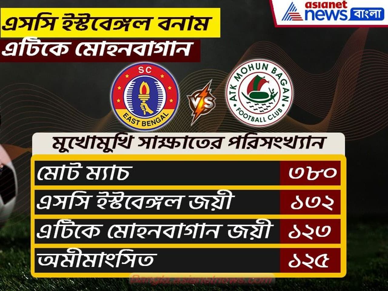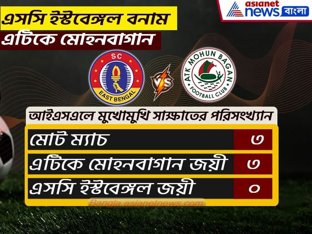 ইস্টবেঙ্গল-মোহনবাগান লড়াই মানে শুধু ফুটবল নয়, আবেগের লড়াই। বিশেষ করে বাঙালি ফুটবলারদের কাছে এই ম্য়াচের গুরুত্বটা যে এখনও আলাদ তা নতুন করে বলার অপেক্ষা রাখে না। প্রাক্তন ফুটবলার থেকে বিশেষজ্ঞরা বারবার বলেছেন বড় ম্য়াচের আগে গত ম্য়াচের ফলাফল, বিগত পরিসংখ্যান কোনও কিছুই খুব একটা প্রভাব ফেলে না। ওই দিন ৯০ মিনিট যেই দল ভালো ফুটবল খেলবে তারাই বাজিমাত করবে। তারপর পরিসংখ্যানের একটা মনস্তাত্ত্বিক ফ্যাক্টর থেকেই যায়। কারণ যেমন আইএসএলে এটিকে মোহনবাগানের বিরুদ্ধে এখনও একটিও ম্য়াচ জিততে পারেনি এসসি ইস্টবেঙ্গল। গত মরশুমে প্রথম বার আইএসএলে অংশ নেয় কলকাতার দুই প্রধান। আর প্রথম বার আইএসএলের দু'টো ডার্বিতেই হারতে হয় লাল-হলুদ ব্রিগেডকে। এই মরসুমেও প্রথম ডার্বিতে জয়ের হাসি হেসেছে সবুজ-মেরুণ ব্রিগেডই। ফলে এবার যেমন চারে-চার করতে মরিয়া সবুজ মেরুণ ব্রিগেড, অপরদিকে আইএসএল ডার্বিতে প্রথম জয়ের খোঁজে লাল-হলুদ ব্রিগেড।