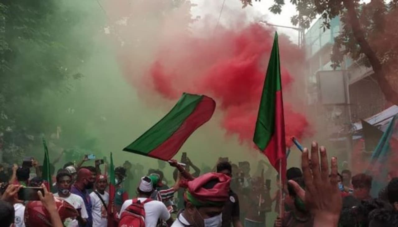 অবশেষে সেই মাহেন্দ্রক্ষণ এল রবিবার। এদিন বাইপাসের ধারের পাঁচতারা হোটেল থেকে রোড-শো করে আইলিগ ট্রফি নিয়ে আসা ময়দানে, মোহনবাগান তাঁবুতে। বাইপাস থেকে কাদাপাড়া-উল্টোডাঙা-খন্না হয়ে ক্লাব তাঁবু পর্যন্ত বিজয় মিছিলে শামিল হন কয়েক হাজার মোহনবাগান সমর্থক। আইলিগ চ্যাম্পিয়ন মোহনবাগানকে টুইট করে শুভেচ্ছা জানিয়েছেন প্রধানমন্ত্রী নরেন্দ্র মোদি ও মুখ্যমন্ত্রী মমতা বন্দ্যোপাধ্যায়। বাদ যায়নি কেন্দ্রীয় ক্রীড়ামন্ত্রী কিরেন রিজিজুও। আগামী দু'দিন ধরে উৎসব চলবে শহরে। মোহনবাগান দলকে শুভেচ্ছা জানিয়েছেন বিজেপি নেতা কৈলাশ বিজয়বর্গিয়। তিনি বাংলাতেই সোশ্যাল মিডিয়া বার্তা দিয়েছেন।