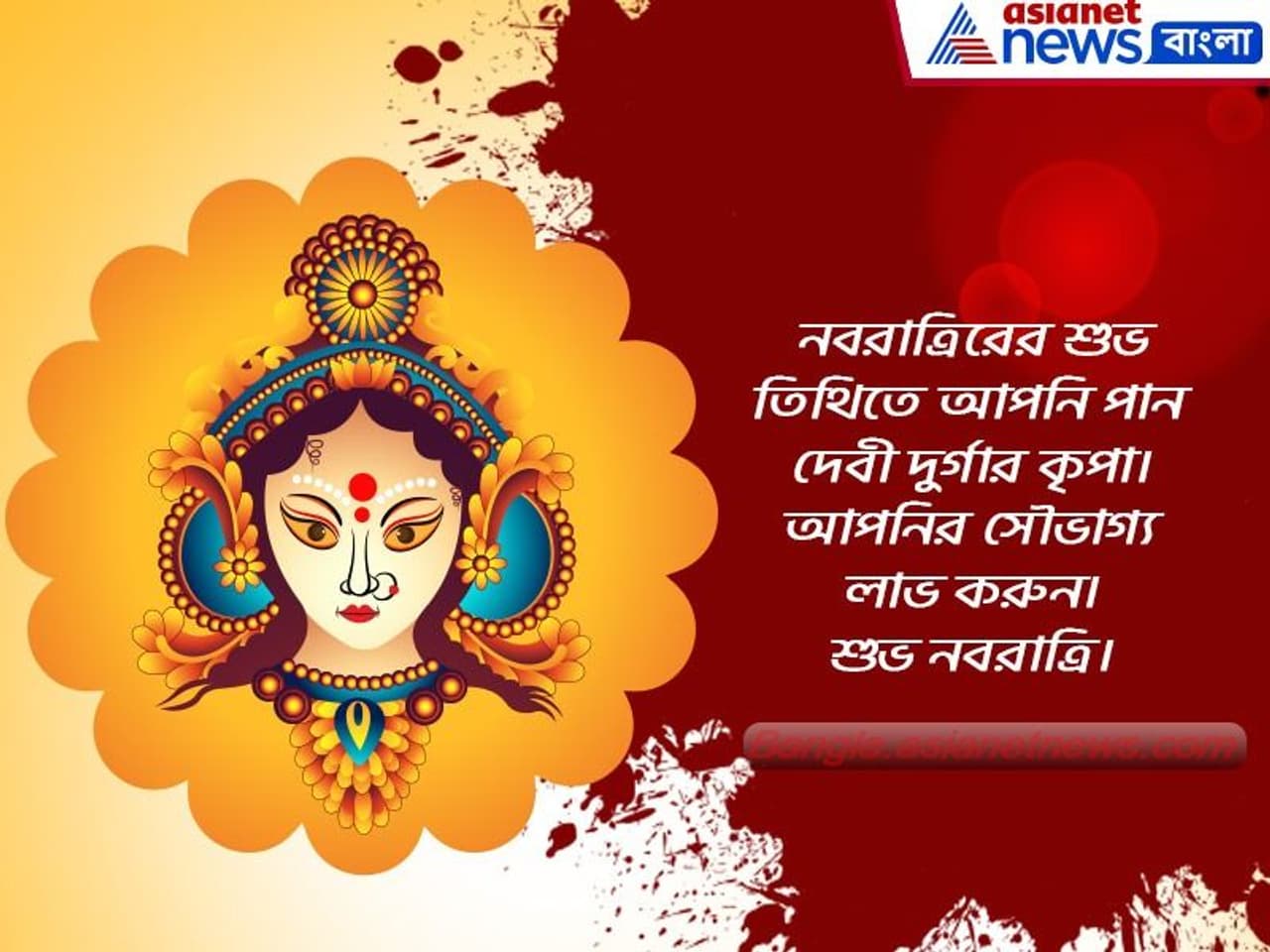 আজ দেবী দুর্গার আশীর্বাদ বর্ষিত হোক আপনার ওপর। শুভ নবরাত্রি। আনন্দে কাটুক এই নয় দিন। - এই শুভ তিথিতে সকলকে জানা শুভেচ্ছা। দেবীর দুর্গার আশীর্বাদ যেন সকলের ওপর বর্ষিত হয় সেই কামনাই করুন। আপনার পাঠানো বার্তা মন কাড়ুক সকলের।