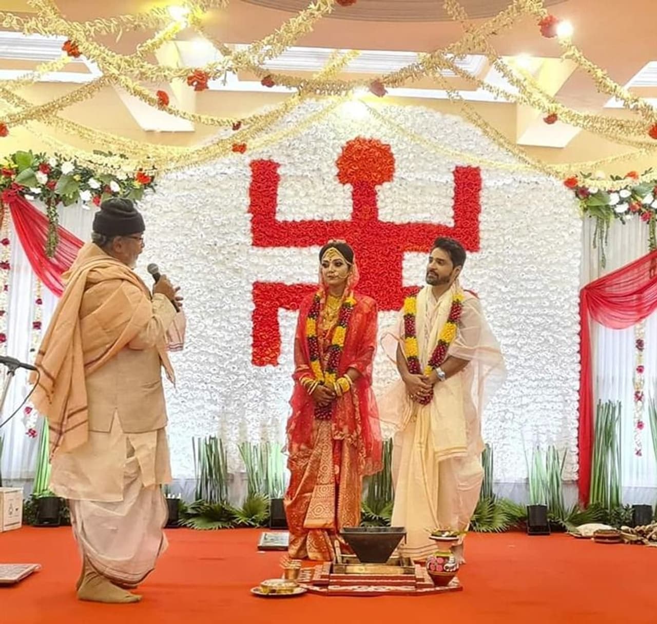 গতকাল অর্থাৎ ৯ ডিসেম্বর বৈদিক রীতি মেনে সাতপাকে বাঁধা পড়েছেন গৌরব-দেবলীনা।