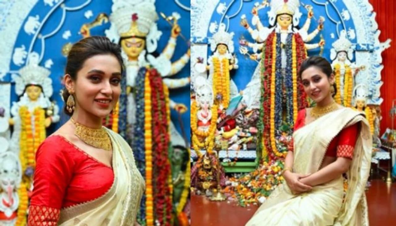 প্রতিমার সামনে প্রণাম করে সেই ছবিও পোস্ট করেছেন। করোনা আবহ, মন খারাপের মাঝেও মা-কে বরণ করে নেওয়াটাই আনন্দের।