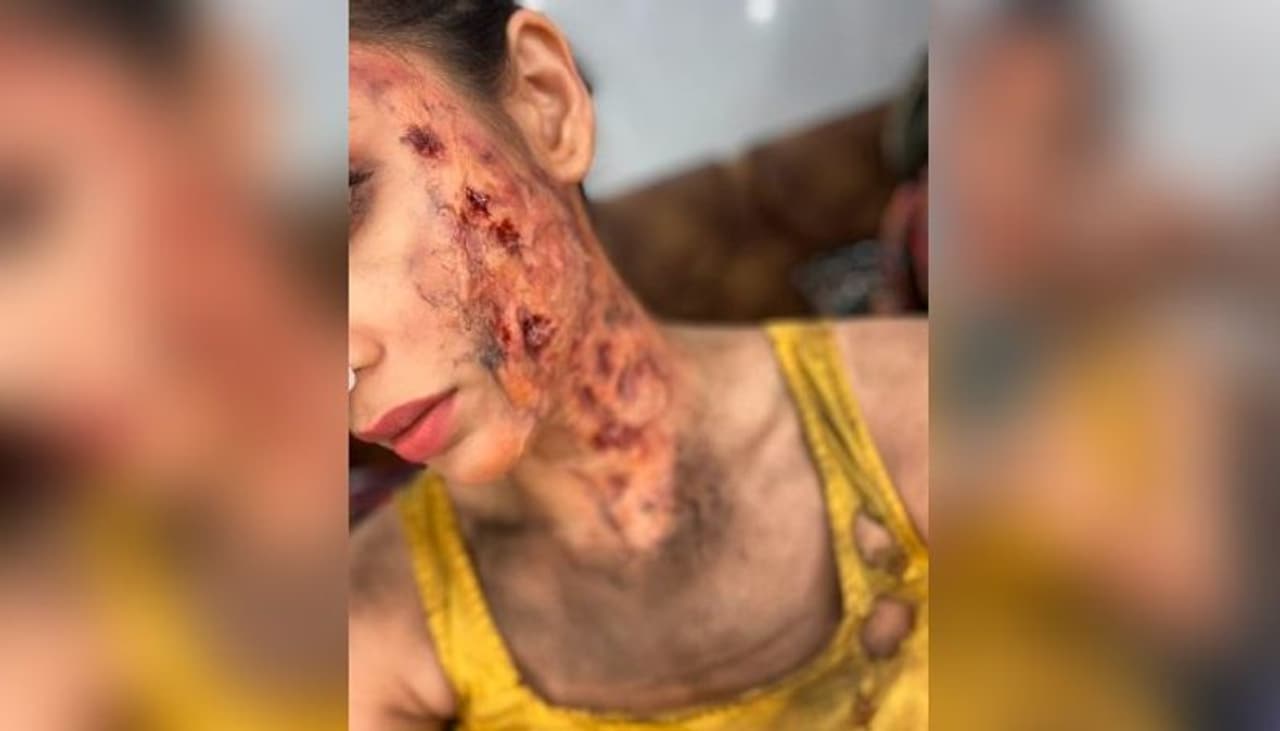 যেখানে মুখের বাঁ দিকটা পুড়ে গিয়ে ঝলসে গিয়েছে। এমনকি হাত, ঘাড়ও পুড়ে গিয়েছে। ছিঁড়ে গিয়েছে জামা।