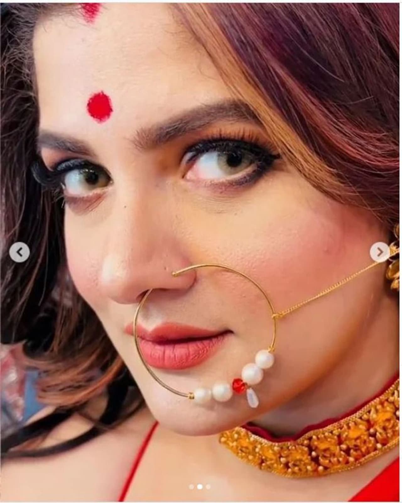 নাকে নথ, মাথা ভর্তি সিঁদুর, নববধূর রূপে শ্রাবন্তী,শীঘ্রই কি সুখবর দিচ্ছেন নায়িকা