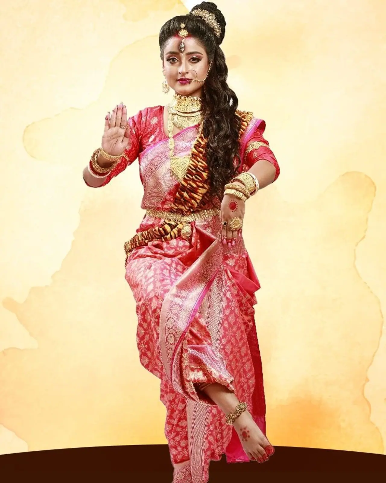 ভগবান কৃষ্ণের জন্মের সময় অত্যাচারী কংসকে সাজা দিতে দেবী ধরেন যোগমায়া রূপ। এই রূপে রয়েছেন দেবাদ্রিতা বসু।