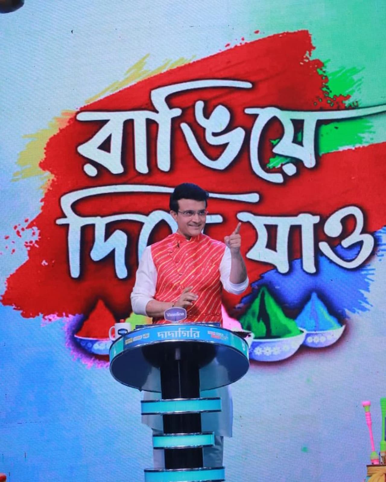 হোলি উপলক্ষ্যে 'দাদাগিরি'-র বিশেষ পর্ব। দাদাগিরি মঞ্চে টলিউডের তারকা অভিনেত-অভিনেত্রীদের সঙ্গে রঙিন মেজাজে পাওয়া গেল সঞ্চালক তথা বর্তমান বিসিসিআই প্রেসিডেন্ট সৌরভ গঙ্গোপাধ্যায়কে।
