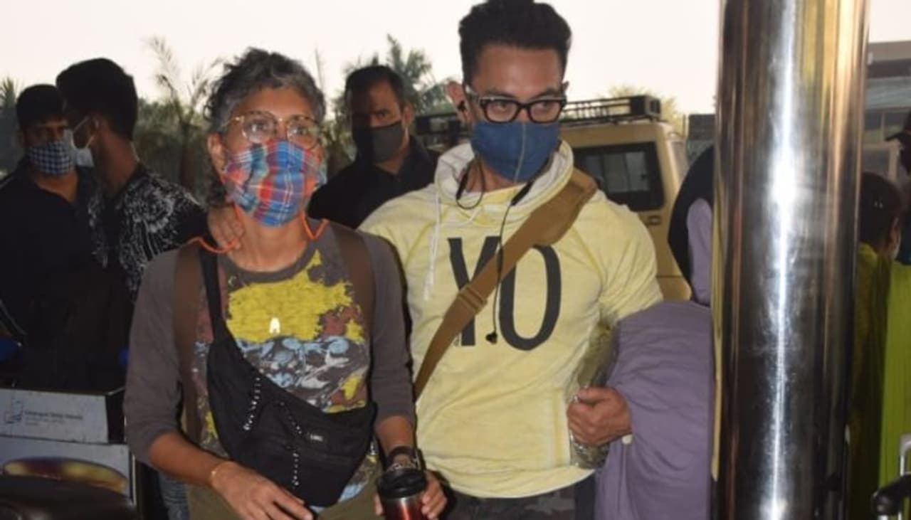 হলুদ রঙের পুলওভারে দেখা যাচ্ছে আমিরকে, অন্যদিকে ধূসর রঙের পোশাকে দেখা গেল কিরণকে।